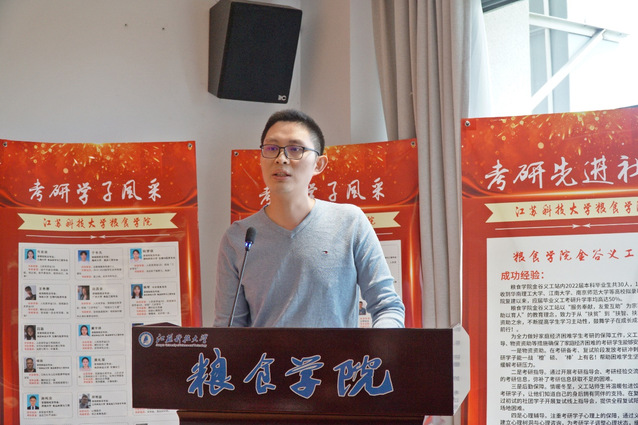 粮食学院党总支副书记赵敏做考研工作总结报告。她指出,考研工作是学校学风建设的重要抓手,也是提高人才培养质量的重要途径。在学院大力营造考研氛围以及精心组织下,广大教师悉心辅导,考研学生潜心备考,粮食学院2022年考研成果喜人,考研录取率达42%,其中“双一流”高校共录取27人,占比64%,包括西北农林科技大学1人,华南理工大学3人,江南大学8人等。