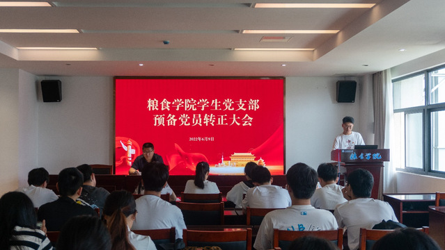 2022年6月9日上午, 粮食学院学生党支部在学院楼440室召开了预备党员转正大会,讨论樊姝缘、李超、孙德宏、李万星、孔凡、高林晨萌、孙楠、张淑涵、刘博宇共9位同志转正事宜。应到会党员37名,实到会党员37名,符合会议召开要求,大会由学生党支部副书记柴艺博同志主持。