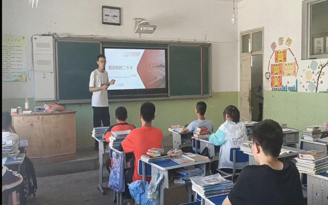 宣讲团成员杨尚荣、华辰炜、黄洋深入家乡学校,社区等地,通过生动的PPT展示,宣传贯彻习近平新时代中国特色社会主义思想。宣讲团成员紧密围绕迎接党的二十大胜利召开,有针对性地将习近平总书记对青年学生寄语和党的十九届六中全会精神结合起来。宣讲内容全面详实、重点突出,使得深刻认识习近平新时代中国特色社会主义思想的时代意义、理论意义、实践意义、世界意义,有效地推动思政宣传与理论宣传走深、走实、走心。