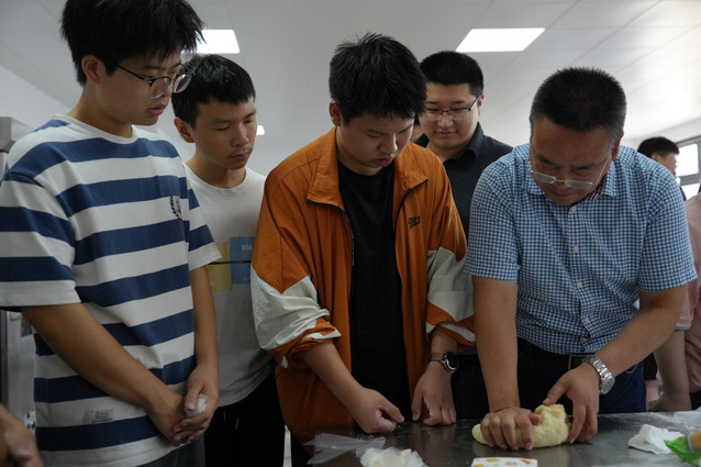 温情做皮、幸福做馅,爱烘焙着幸福和喜悦。粮食学院食品工艺学教室里,师生们欢聚一堂,兴高采烈地动手做糕点,一边认真专注地和馅、做饼皮,一边聊着中秋节的典故和传统寓意,欢声笑语间传统节日文化静静地流淌。师恩如山终生不忘,今天教师节幸运地遇到中秋节,学生们用自己心里的敬爱给老师做最圆满的月饼,将心中满满的祝福包进月饼,为老师们送上一份节日的祝福。