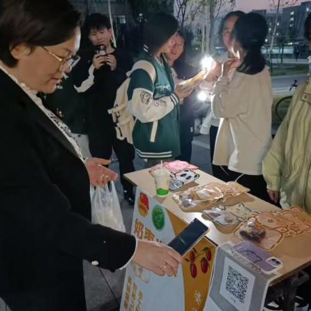制作完成后,粮食学院在⻓⼭校区东、⻄⻝堂⾯向全校师⽣摆摊义卖⾃制的奶枣与糯⽶枣。现场工作人员搬来桌⼦,拉开横幅,粘贴海报,刚开始叫卖,便受到⼤家的积极响应,路过的同学纷纷驻足,义卖活动进⾏得如⽕如荼,不到⼀⼩时,制作的奶枣与糯米枣便销售一空。活动结束之后,义卖收⼊全部捐入中国乡村发展基金会,助力乡村发展,促进共同富裕。