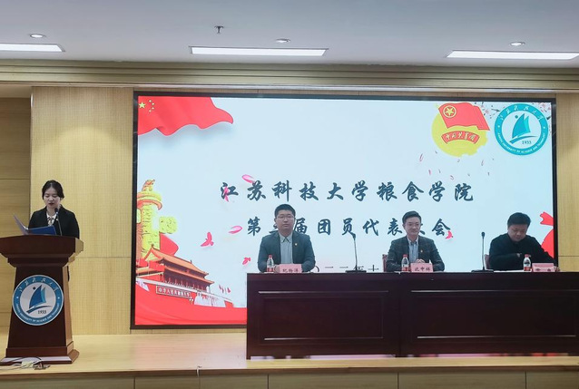 11月4日, 粮食学院第三届团员代表大会在长山校区图书馆B102报告厅顺利召开, 团委副书记沈中祥、 粮食学院党总支副书记徐晶、 粮食学院团委副书记纪杨洋以及学院各年级团员代表参加会议,由代雯同学主持。