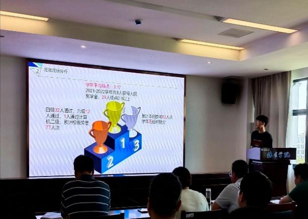 在优良学风班评审展示中,两位班长从班级风采、日常管理、参与活动、获奖情况等方面进行答辩,汇报学风建设方面取得的优异成绩,充分展示了班级勤学向上、奋发图强、敢于创新的优良作风,展现了勤奋刻苦、求真务实、锐意进取、团结协作、乐于奉献的精神风貌。