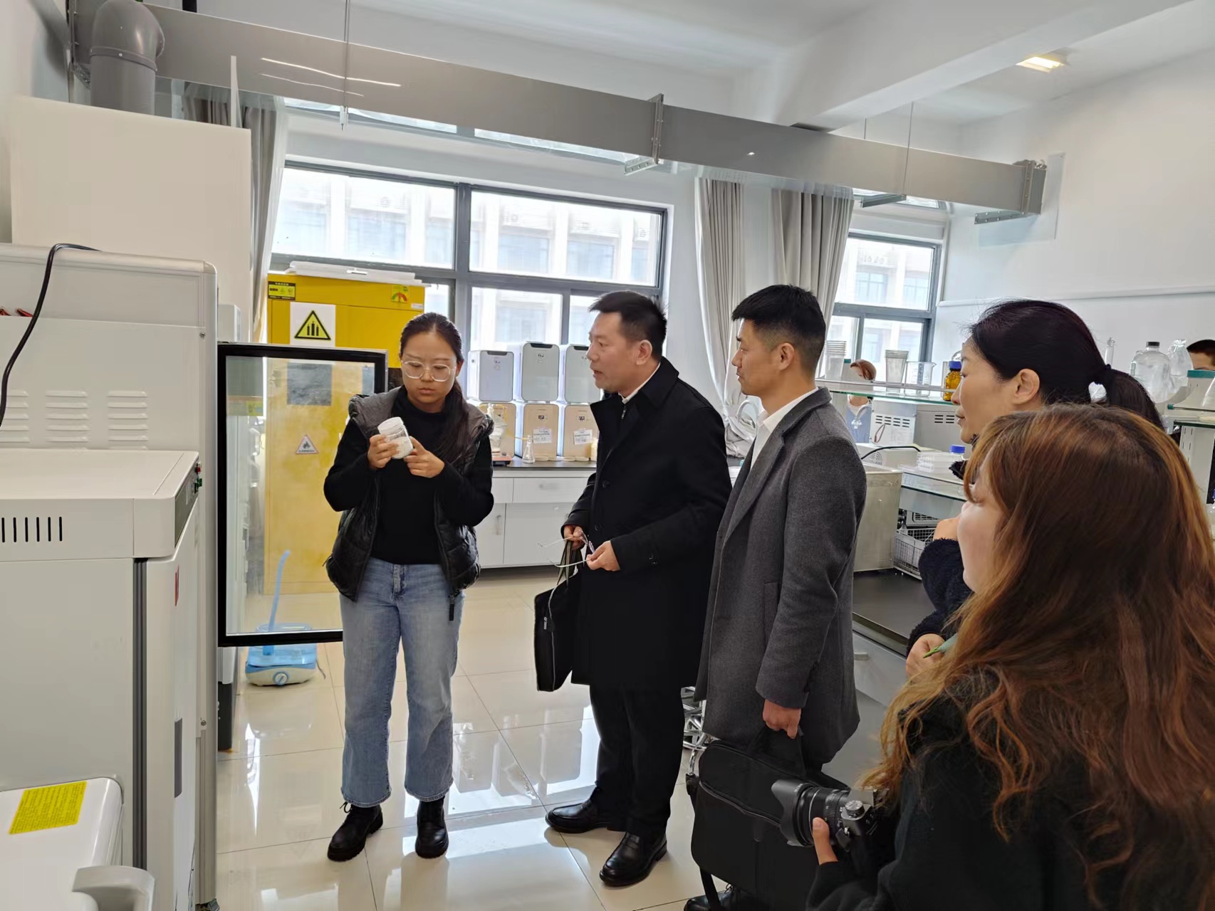 此次招聘宣讲,常州储备公司提供粮油仓储管理员和粮油质量检验员两个岗位,一共有12名学生参加了现场面试。孙书记对粮食学院培养的学生质量给予了充分肯定和高度赞赏。招聘结束后,孙书记一行参观了学院实验室并表达了和学院建立长期合作关系的强烈意愿。