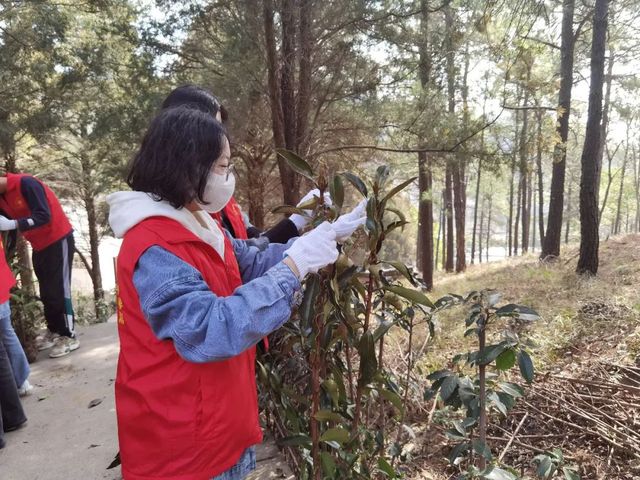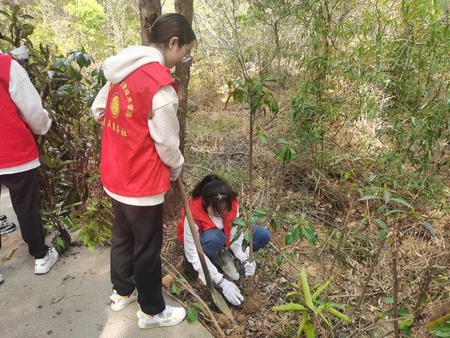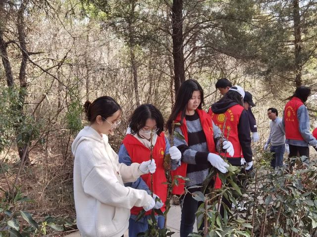 戴好手套,拿好树苗和铁锹,志愿者们开始了植树。独木难成荫,树多方成林。在花农师傅的指导下,她们很快掌握了植树技巧,分工合作、齐心协力,很快一片新的小树林就出现在大家眼前了。