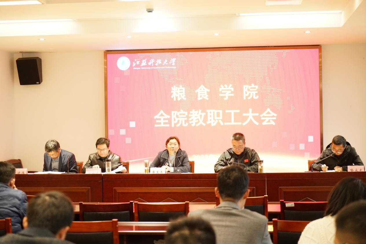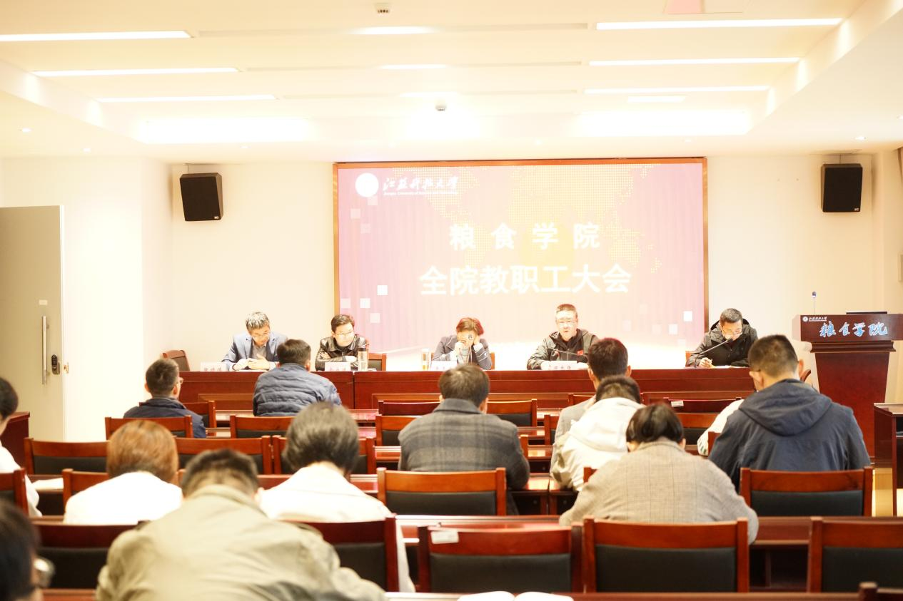 4月4日下午,粮食学院在学院440报告厅召开全院教职工大会,安排部署学院2023年各项工作。大会由粮食学院鲁玉杰院长主持,学院领导班子成员和全院教职工参加会议。