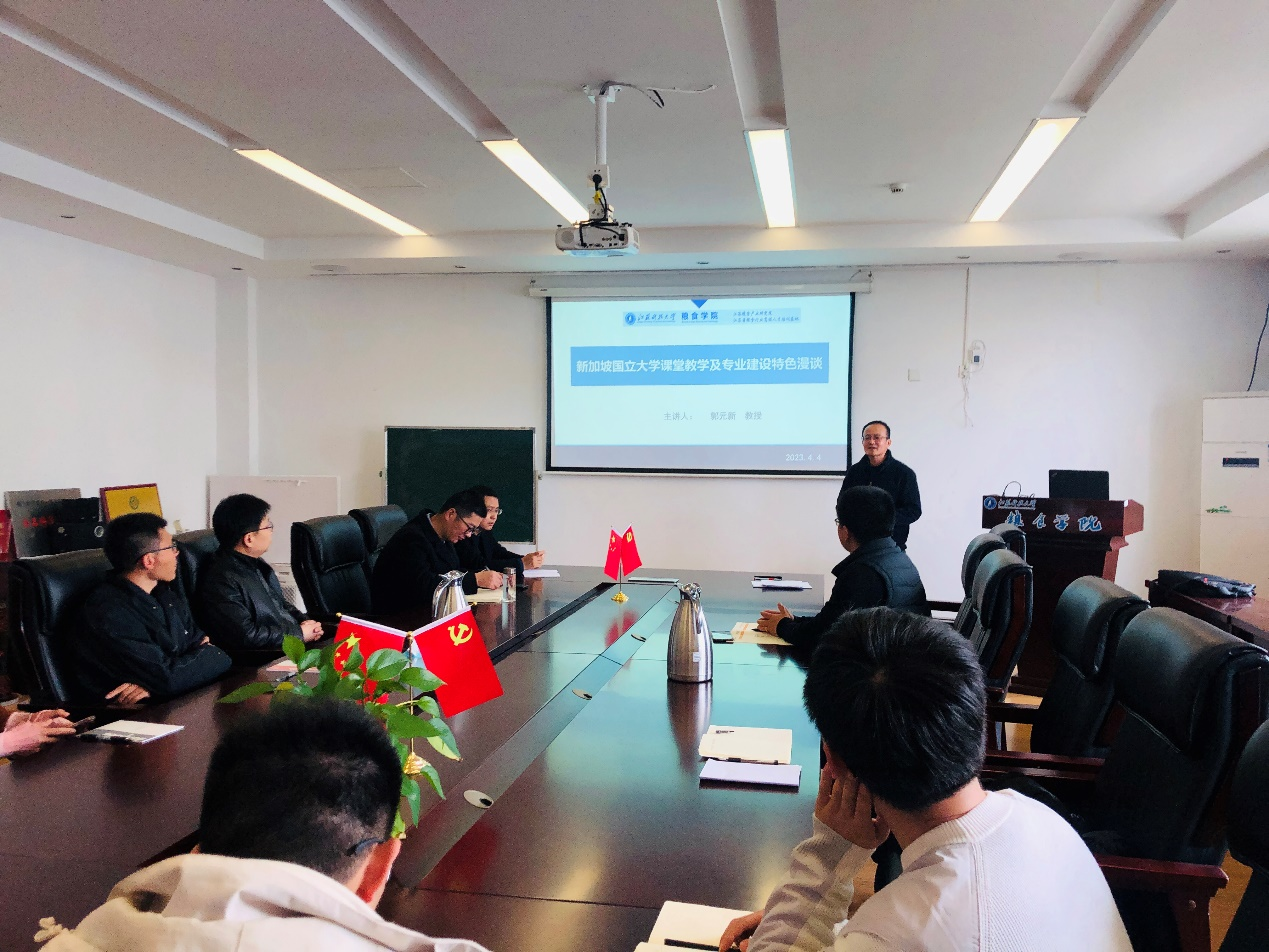 2023年4月4日,粮食学院在436会议室举办了新加坡国立大学课堂教学及专业建设特色漫谈教学沙龙。主讲人郭元新教授在2022年9月至2023年1月受 专业负责人海外教学研修项目资助,前往新加坡国立大学开展了为期4个月的访学。