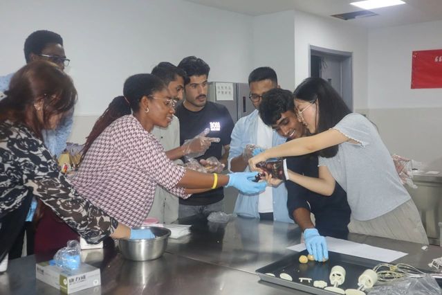 月饼烘焙中,欢乐进行时。在等待月饼出炉的间隙,中外学生共同制作香囊,将祝福和愿望藏进其中。每一件作品都生动诠释了跨文化的碰撞和融合。活动最后,大家在饼香四溢、悬灯结彩的欢声笑语中深刻体会到“部分方圆,只得团圆”的节日氛围。