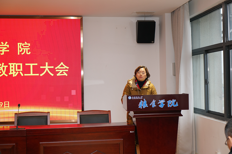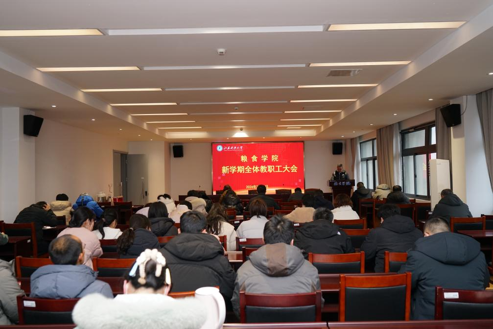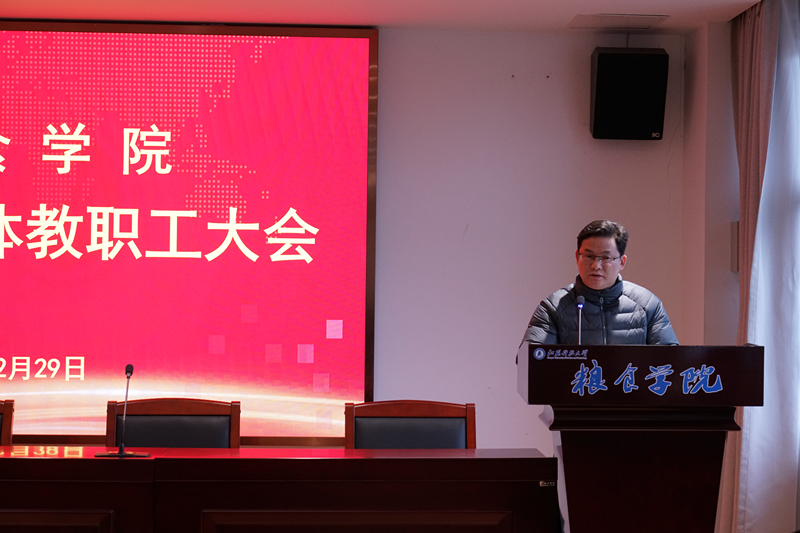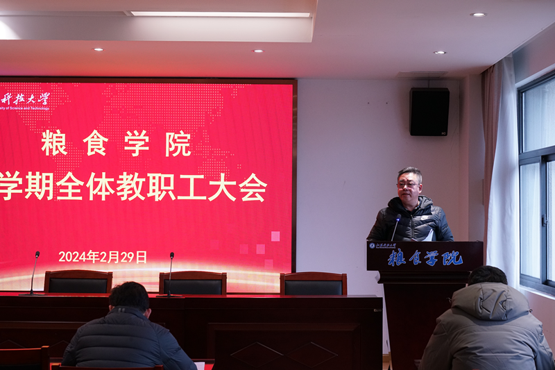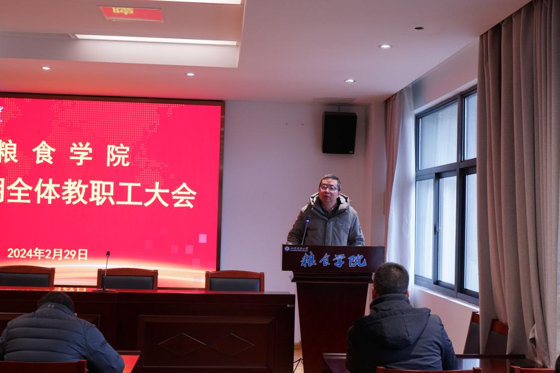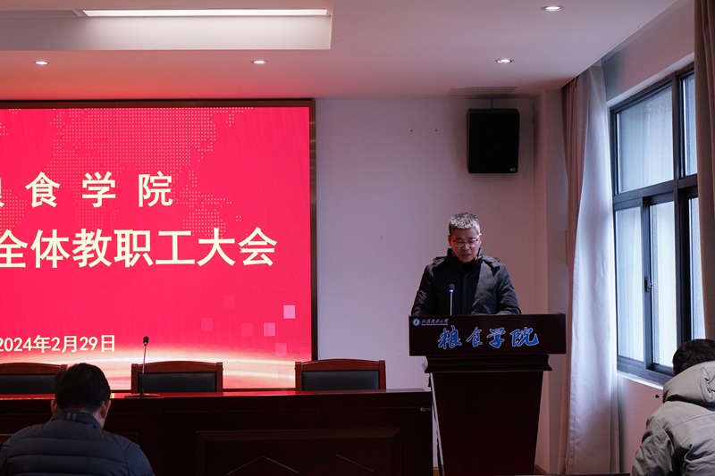 2月29日下午,粮食学院在学院440报告厅召开全院教职工大会,总结学院上年工作,安排部署今年各项工作任务。会议由党总支书记梁忠臣主持。