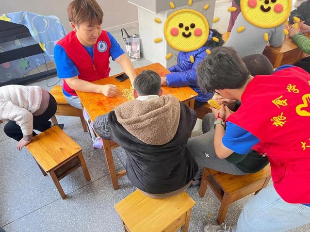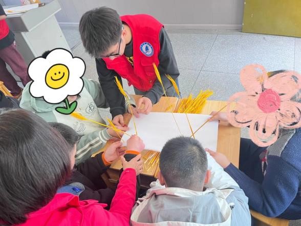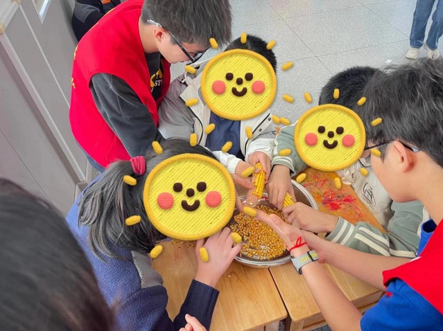 在特殊教育中心,志愿者们带领孩子们参与泡沫板插稻穗、掰玉米、数玉米和观看节粮小视频等一系列有趣的活动。通过在泡沫板上插入稻穗,孩子们不仅能锻炼自己的手眼协调能力,还能感受到与大自然的紧密联系。活动现场,孩子们专注地将稻穗插入泡沫板上,仿佛在农田中亲手参与收获的喜悦。