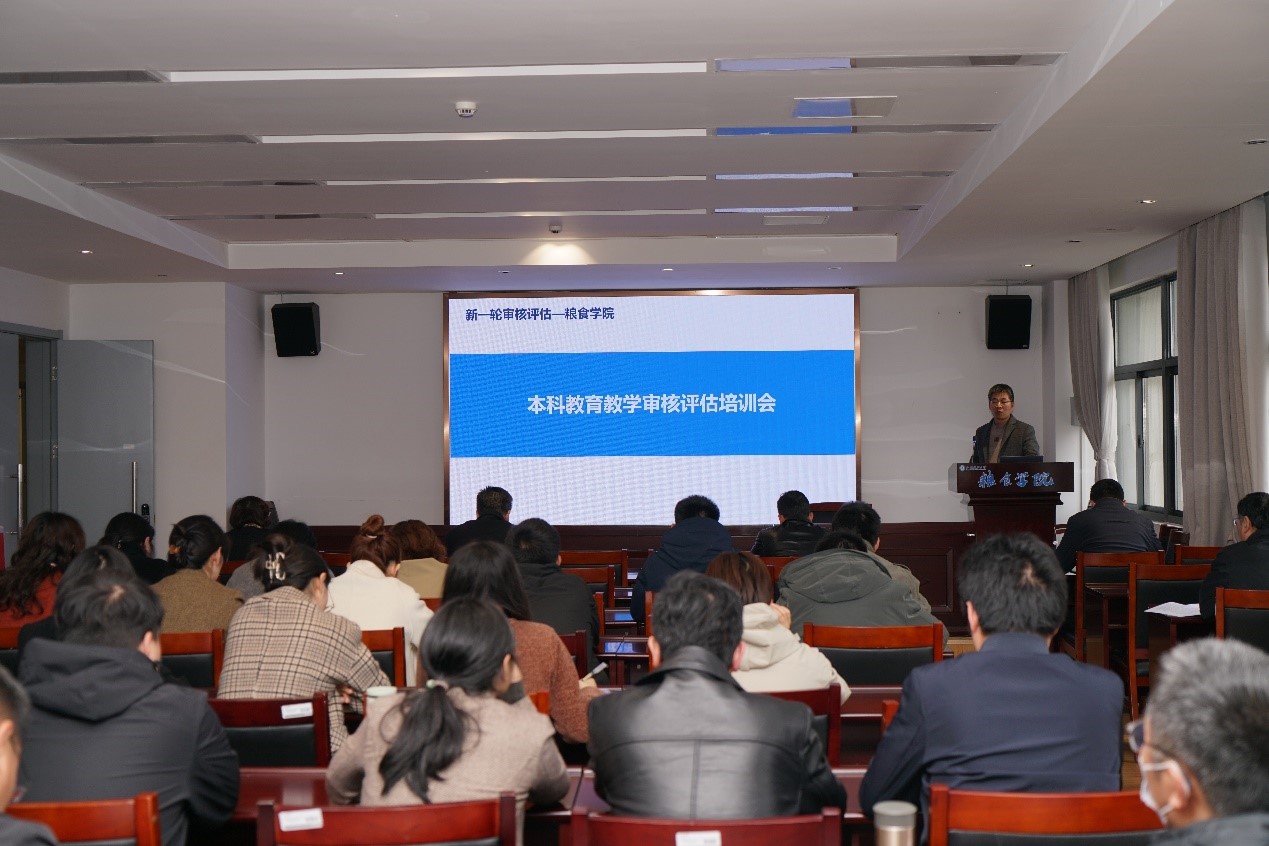 为迎接学校新一轮本科教育教学审核评估工作,立足新发展阶段,贯彻新发展理念,构建新发展格局,促进高质量发展,全面提高人才培养质量,3月28日下午粮食学院举办了本科教育教学审核评估培训会,鲁玉杰院长主持,张晓伟副院长给粮食学院全体教职工进行了培训。
