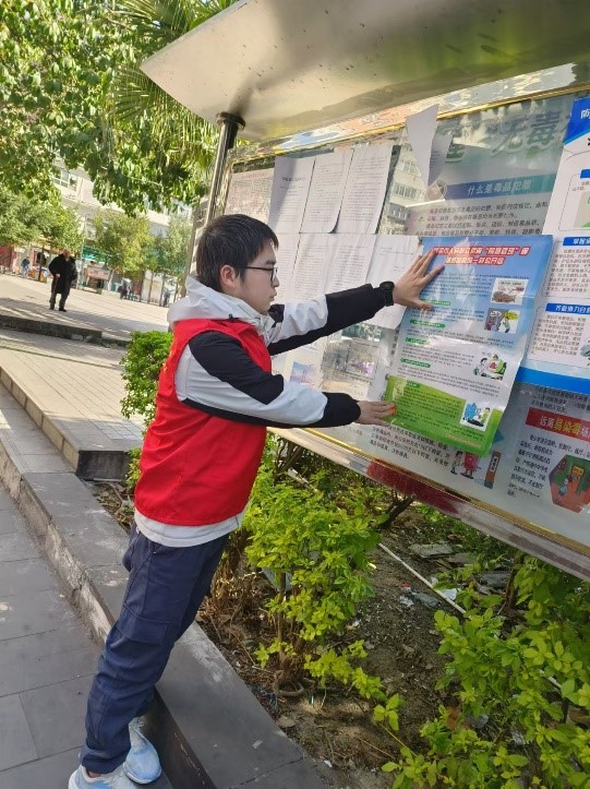 图表 4李东航同学正在进行宣传海报的张贴