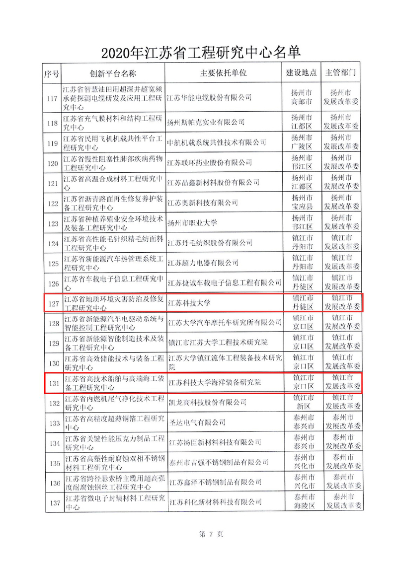 近日,江苏省发展和改革委员会印发了《关于同意建设2020年江苏省工程研究中心的通知》, 土木工程与建筑学院岩土工程团队申报的“江苏省地质环境灾害防治及修复工程研究中心”、海洋装备研究院申报的“江苏省高技术船舶与高端海工装备工程研究中心”获批立项建设。