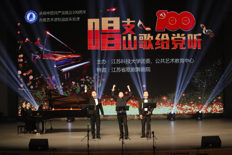 “没想到平时耳熟能详的歌曲有这么多感人的红色故事”。4月6日晚, 团委、公共艺术教育中心特邀江苏省歌剧舞剧院盛万航、万捷、沈听、王子月四位国家级演员为全校师生演出了一场别开生面的音乐党课。高雅艺术进校园,唱支山歌给党听,这一场沉浸式“学党史、强信念、跟党走”的音乐党课让全场师生全情投入、热血沸腾。