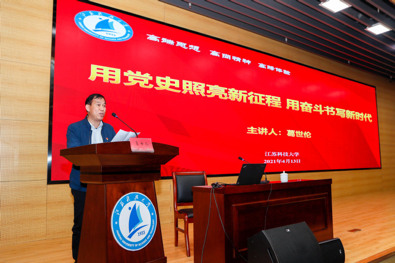 葛世伦说,精神的力量是无穷的。凭着一股精气神, 这几年实现了高质量发展,人才培养质量稳步提高。他要求围绕“培根铸魂,坚定理想信念;入脑入心,汲取前行力量;学史力行,彰显使命担当”,高标准高质量完成党史学习教育各项任务。各级党组织和广大师生要坚持学思用贯通、知信行统一。用好学校特色资源,发挥好景荣春等先进典型的教育引导作用。充分挖掘船舶工业发展、海军现代化建设、蚕桑种质资源中的思政元素,培养学生找准时代坐标和奋斗目标,在鉴往知来中强化使命担当,坚定建设海洋强国、振兴船舶工业的远大志向和人生选择。