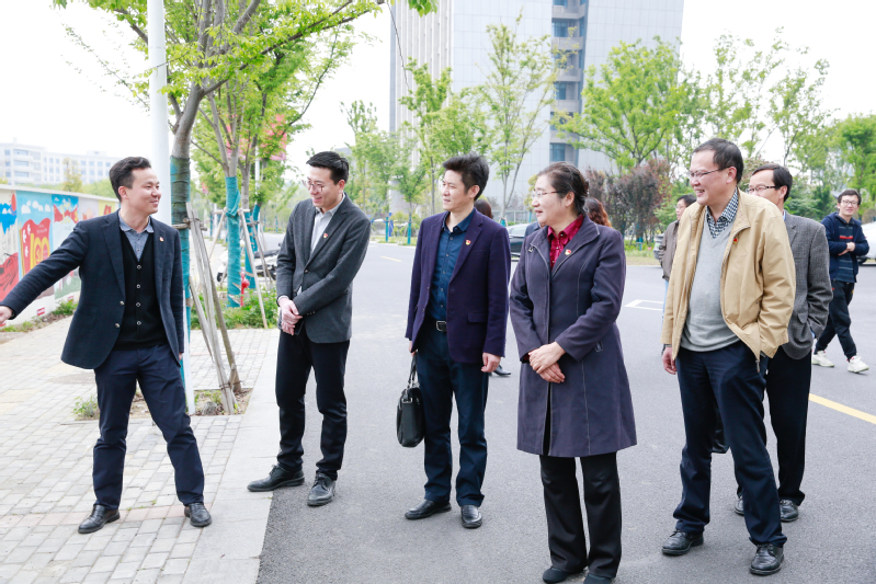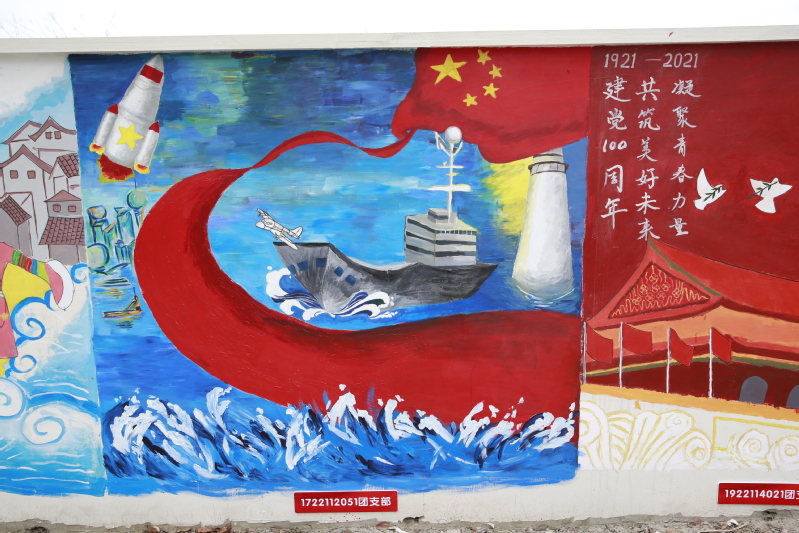 听取汇报之前,省委教育工委第四指导组现场参观了长山校区“致敬百年路,启航新征程”主题墙绘。正值中国共产党成立100周年,为进一步丰富校园生活,弘扬以爱国主义为核心的伟大民族精神, 校团委特举办“致敬百年路,启航新征程”暨庆祝建党100周年主题墙绘艺术大赛,以独特的形式构筑爱国精神与校园文化的紧密纽带,发展和创造具有共青团特色的青年文化。比赛面向全校学生,以团支部为单位开展,同学们积极参与,自主创作,踊跃报名。经过初稿评审,推选出100个团支部参与墙绘大赛,为建党100周年献礼。目前, “致敬百年路,启航新征程”主题墙绘艺术大赛已圆满结束。
