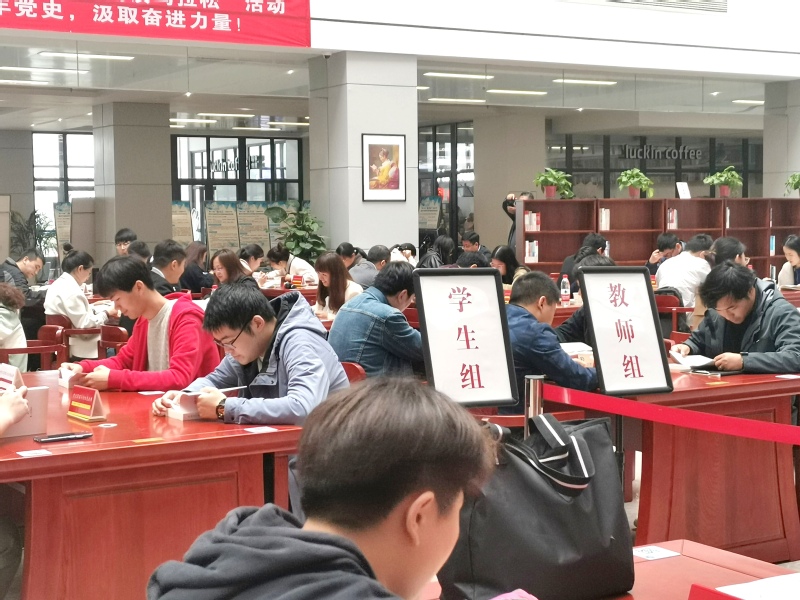 比赛过程中,选手们全神贯注,沉心静气,重温党的历史,追随党的步伐,时不时用笔记录下自己的感悟,浓郁的阅读氛围弥漫在比赛现场的每一处角落。