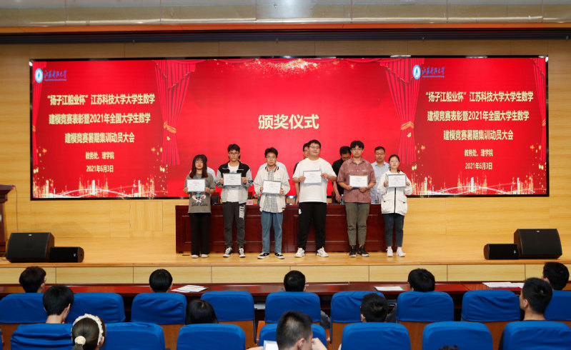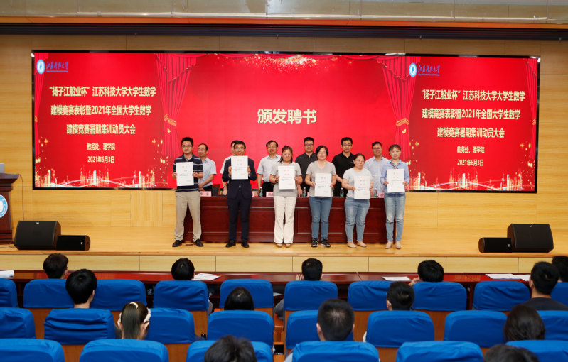 理学院党委书记朱金宣读学生表彰决定,江苏扬子江船业集团党委书记副总经理张宏飞宣读受聘教师名单,与会领导为获奖学生以及受聘教师颁发奖状及聘书。获奖学生代表朱士悦与受聘教师代表徐祖润分享参赛体会,号召大家撸起袖子加油干, 一同发扬”咬定青山不放松,立根原在破岩中”的竹石精神, 用优异的成绩为学校争光。理学院院长戴俊宣读暑期集训方案。