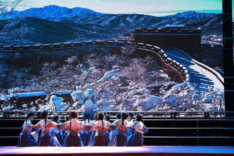 江山如此多娇。大学生艺术团舞蹈队带来的中国舞《沁园春·雪》意境优美,气势恢宏。