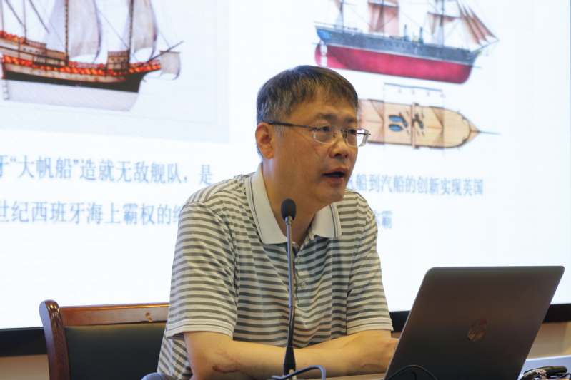 随后,他为同学们展示一系列影像资料,列举了当今极具代表性的实例,提出“探索深海比探索太空难度更大”的观点。他强调,海洋是大国博弈的优先方向。即使目前人类对海洋缺乏认知,也并不影响各国对海洋的争夺。他还从历史角度为同学们全面展现了人类对海洋由航行发展到当今对海洋资源争夺的变化发展历程,详细介绍了我国的“海洋强国战略”,让同学们深刻意识到海洋是当今世界政治、经济、军事、科技竞争的新高地。