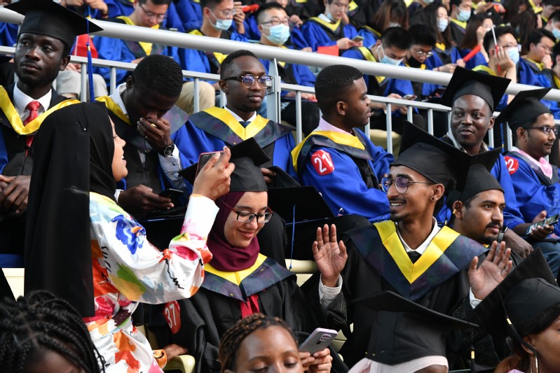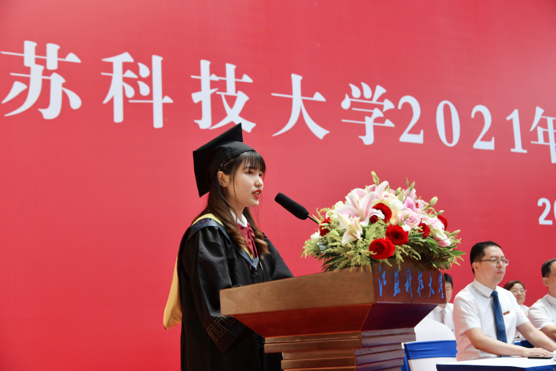 一日科大人,一生科大情。船海学院陈子和同学代表2021届研究生毕业同学发表感言;来自马达加斯加的海外教育学院陈祺同学,代表全体外国硕士留学生作毕业发言;计算机学院陈群同学作为2021届本科生代表阐述心声。他们回首逐梦科大的旅程,感恩母校的培育和关爱,表达了对未来的无限展望——“将永远保持憧憬,守护赤子之心,驾驭时间之马,创造出属于我们这一代人的奇迹。”