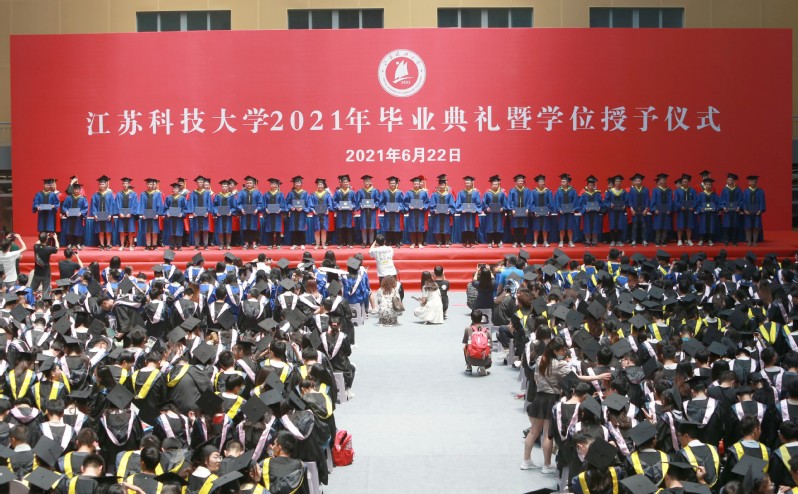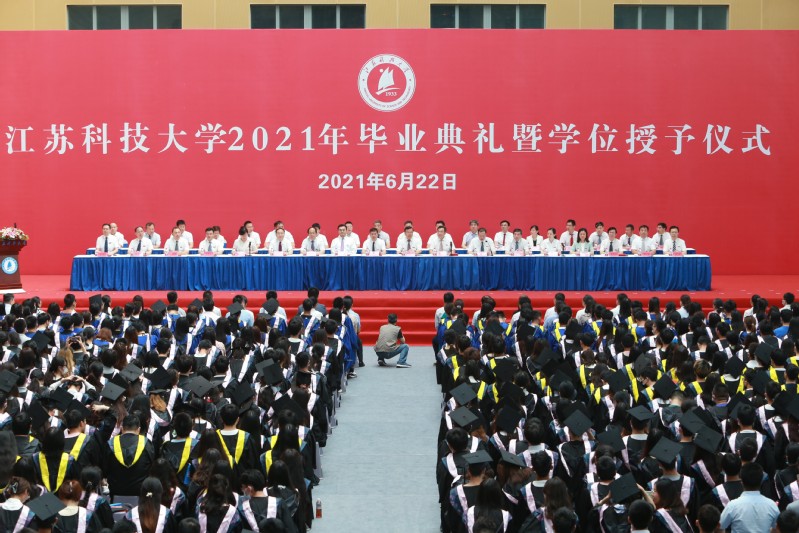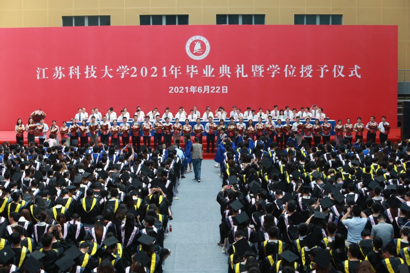 汇入江海,各自灿烂。6月22日夏至刚过, 2021届3773位本科同学,927位博硕士研究生同学以及199位来自35个国家的留学生同学,身着学位服步入大殿堂,接受导师团拨穗正冠、颁授学位和证书。“愿你们带着江科大人的格局、情怀、态度和热血,以世界之眼光、忘我之胸怀,以人类进步、国家富强、人民幸福为己任”,校长周南平寄语张满风帆的青春学子“不负新时代,逐梦新征程”。22日还是张淼等15位毕业同学的生日,学校特别准备了生日礼物,祝他们生日快乐。