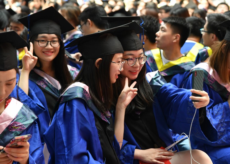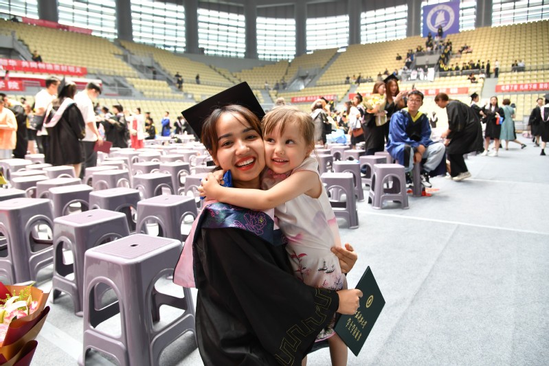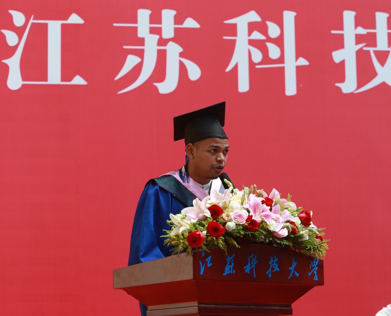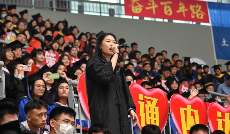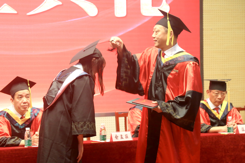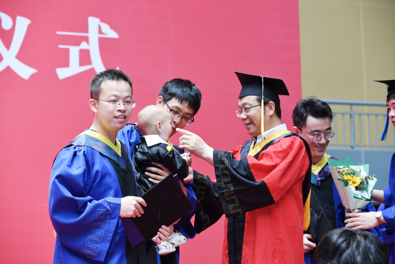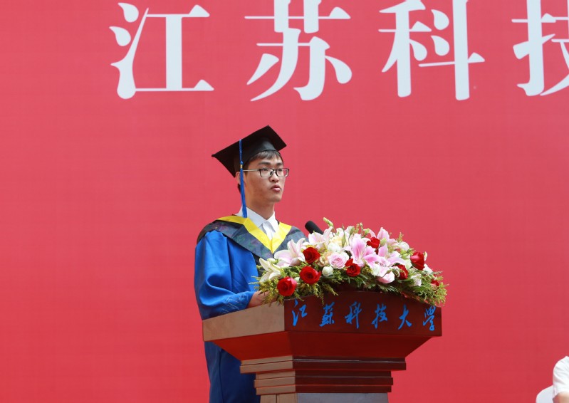 “外国语学院的吴佳虹同学,你剪掉一头长发捐给癌症女童,相信即使是短发,你也一定是人群中最美的女生。”周南平如数家珍,回顾了部分毕业生精彩动人的小故事,给论文影响因子高达16.836的环化学院研究生李俊毅同学点赞,为本届毕业生中图书借阅量排名第一的理学院郁登宇同学叫好,向本科期间保持专业第一的机械工程学院留学生CELINE(赛琳)表示祝贺,对一边备战考研一边定点拍摄学校建设情况的机械工程学院官震同学表达致谢……