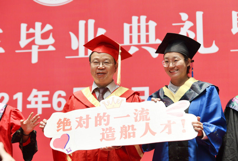 周南平指出,同学们的奋进和努力是学校进步的源泉,“求学时光你们拼出了青春硬实力,学校也与你们一同奋进,致力于提升办学硬实力”,高质量发展成效更加显著,办学特色更加鲜明,社会影响更加扩大,朝着国内一流造船大学的奋斗目标阔步前进。他说,我们会努力让大家看到一个更好更强的江科大,让你们可以骄傲地喊出“江科大永远的神”!