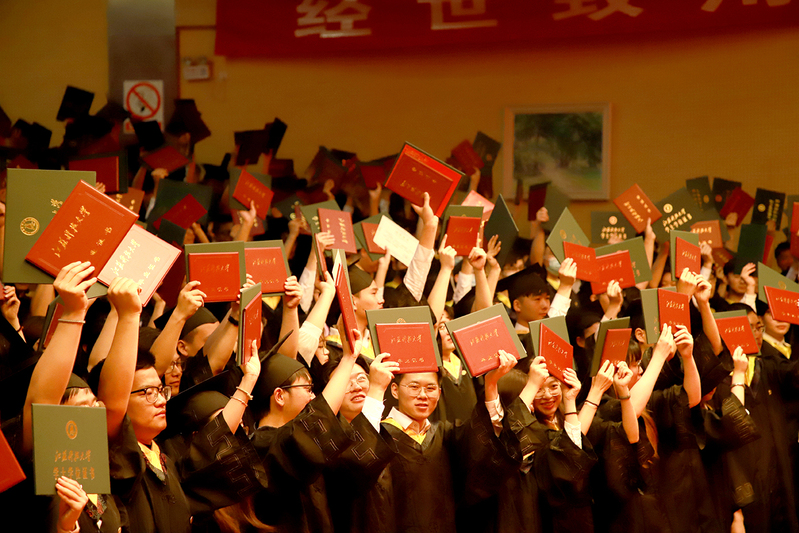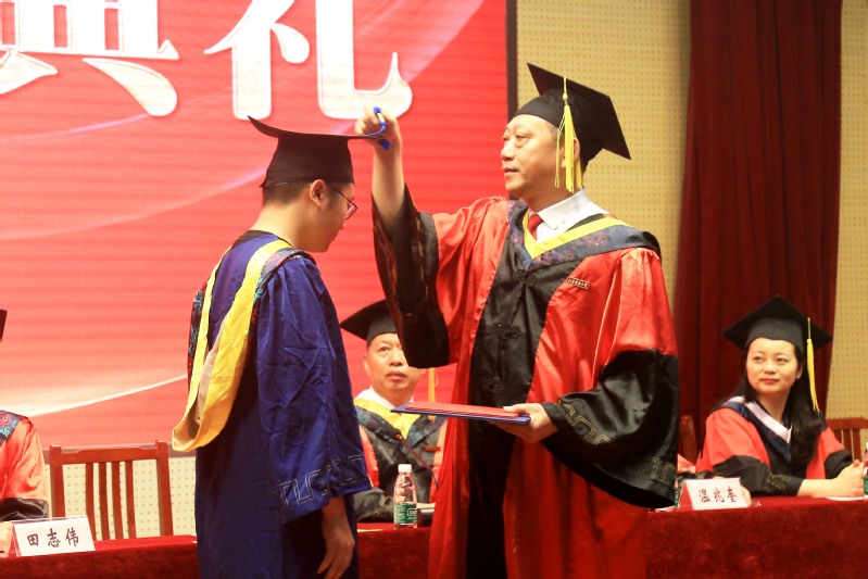 俞孟蕻副校长为研究生、优秀本科毕业生颁授毕业证书和学位证书。出席典礼的导师们共同为全体毕业生授学位。