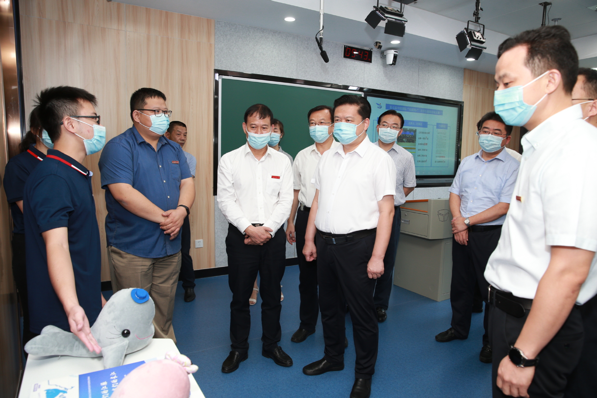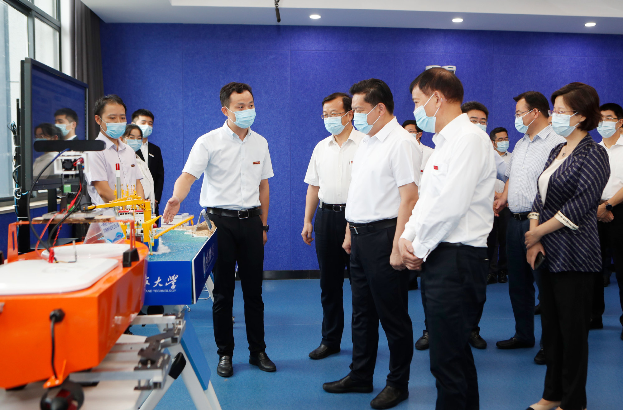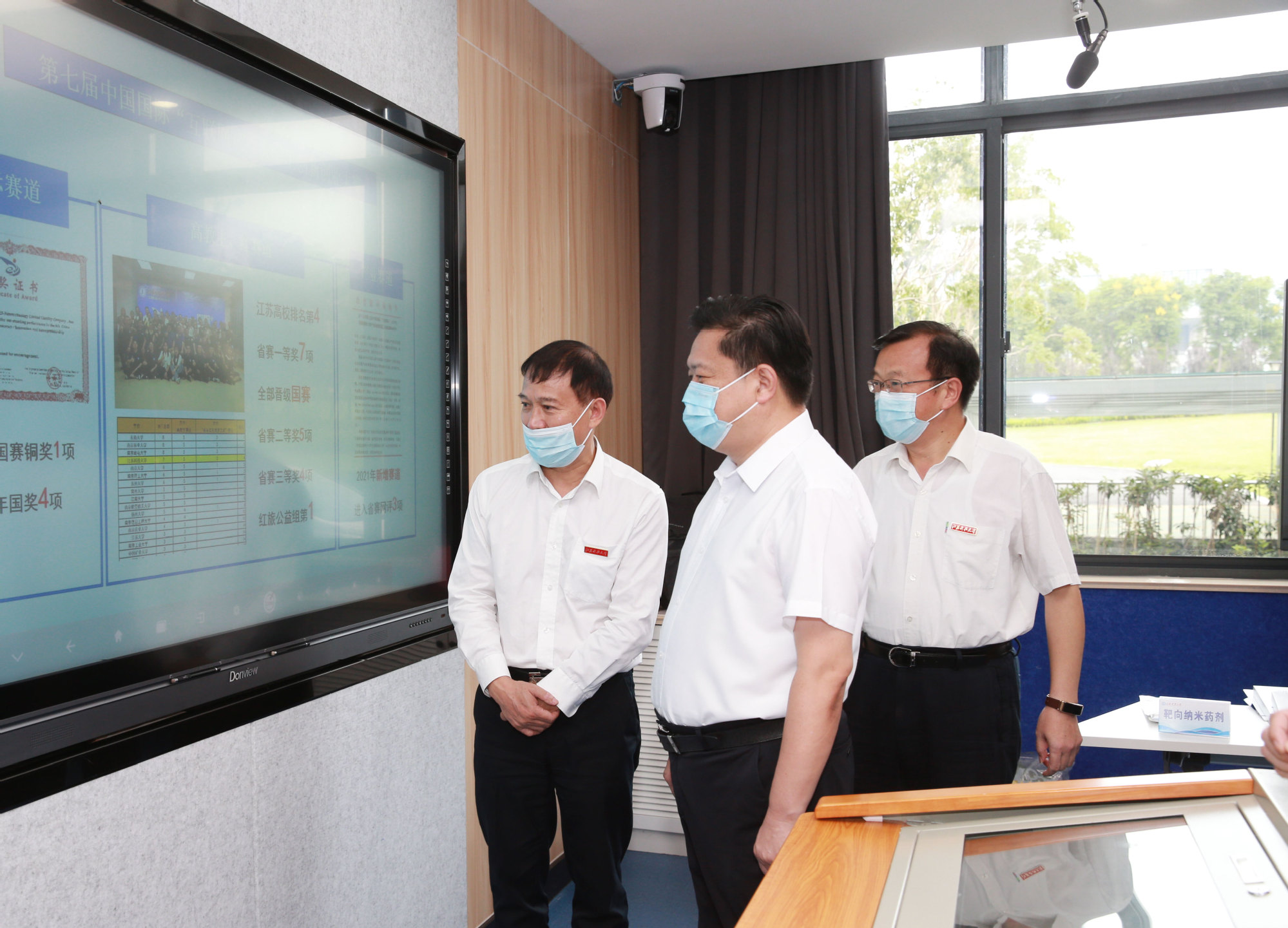 在长山校区文理大楼智慧教室,徐曙海市长与教师代表亲切交流。徐曙海市长一行还参观了海韵湖大坝,观看了学校参与研发的海洋装备模型,听取师生现场介绍,了解学校在船舶、海洋、蚕桑等方面取得的科研成果。观看了学校宣传片之后,校党委书记葛世伦介绍了学校近期在人才培养方面取得的新进展。