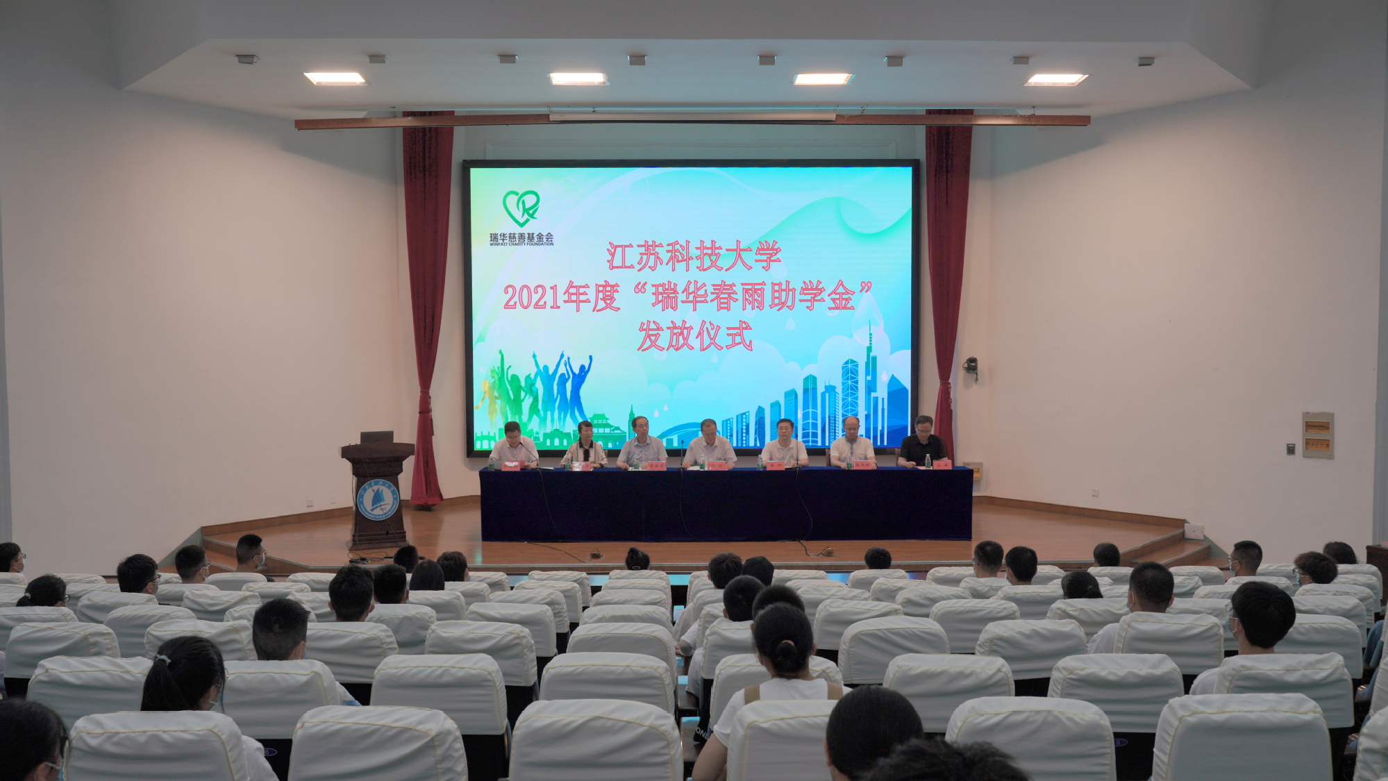 9月19日下午,学校在梦溪校区举行2021年“瑞华春雨助学金”发放仪式,本次共有80名2021级新生获得资助。江苏省瑞华慈善基金会项目经理陈辉和品牌经理查正笠莅临活动现场,副校长、教育发展基金会理事长汤建出席仪式并讲话,发放仪式由教育发展基金会副理事长佘建国主持。