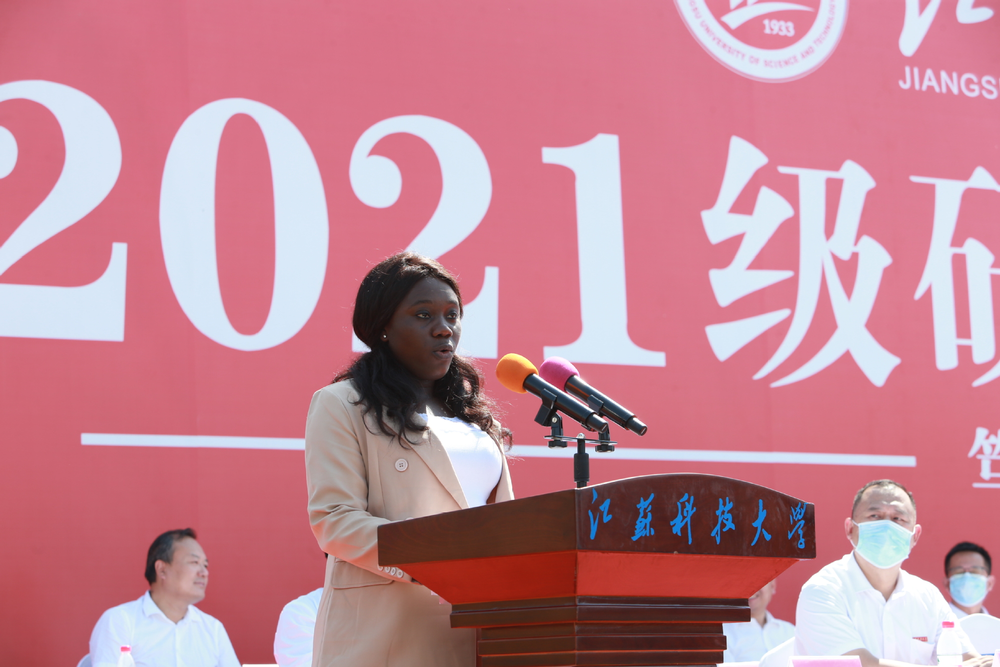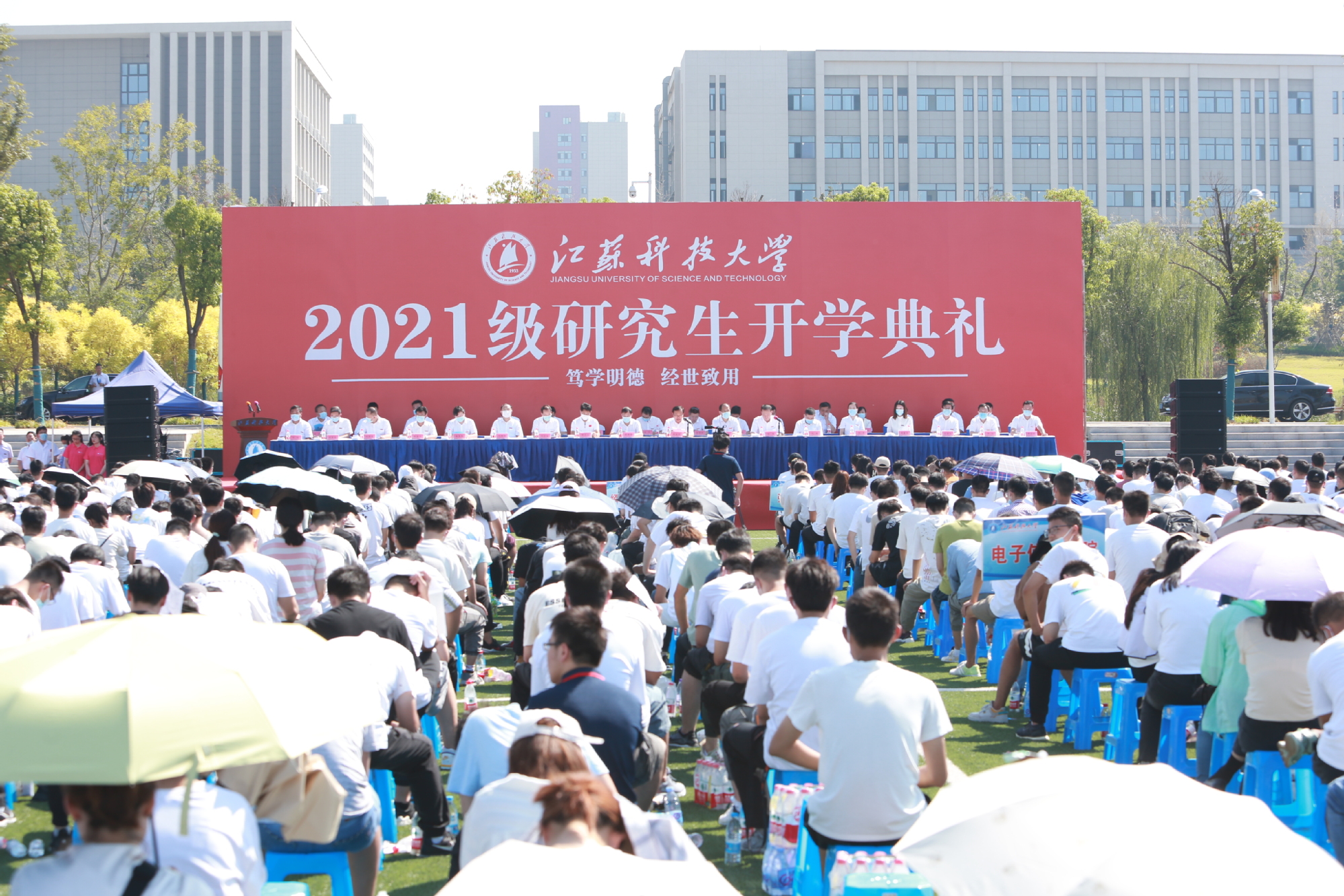 校领导许俊华、王加友、郑培钢、谈镇、嵇春艳、任南,校党委常委李恒川、周春燕、刘新波出席典礼。各学院院长、教师代表、2021级全体研究生和留学生,相关职能部门负责人参典礼。据了解,今年 共有来自全国27个省、市、自治区,14个民族的1792名研究生。海外还有来自亚洲、南美洲、欧洲、非洲35个国家的161名留学生成为江科大新成员,其中本科生61名,硕士研究生83名,博士研究生17名。他们中,除江苏省外,新生人数最多的是安徽省,有167人;船海学院土木水利专业硕士招生人数最多,有138人;有74名同学姓“张”,拥有最多本家;硕士研究生年龄最小的19岁,博士研究生年龄最大的43岁,有力说明学习知识不分“年龄先后”;有省级技术领军人才,有为国防、科研做出突出贡献的科技人才,有退役大学生士兵,还有9位同学是研究生支教团成员。