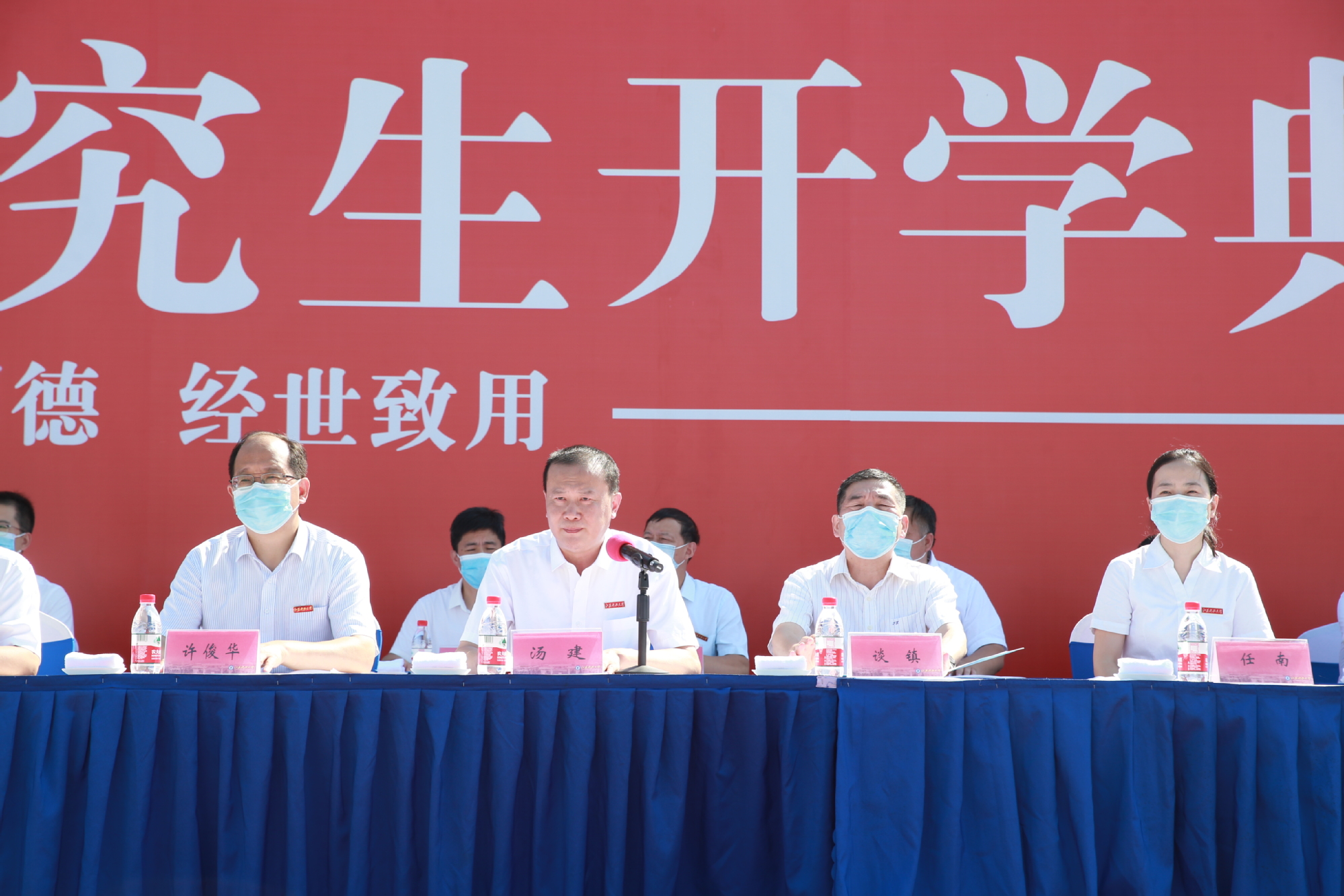 校党委常委、副校长汤建主持典礼。“选择了江科大就是选择了一所有着丰富内涵的大学,一所有着人文情怀的大学,一所有着远大梦想的大学。”校长周南平作《青春续航 不负使命 做有担当的江科大人》的讲话,祝贺全体2021级研究生新生顺利加入到 大家庭,希望同学们在江科大能以更高的追求、更大的动力、更强的自觉,牢牢抓住平台和机遇,与学校发展同向同行,励志勤学,一往无前。