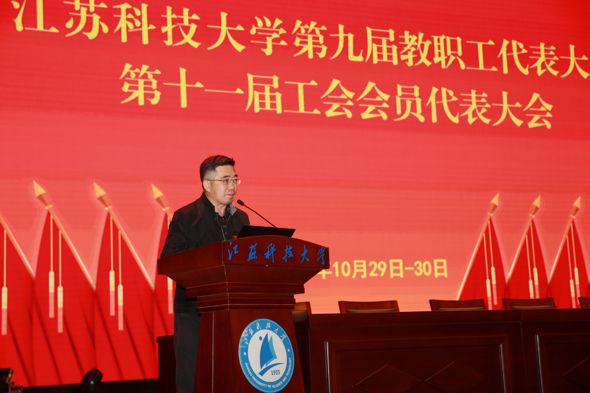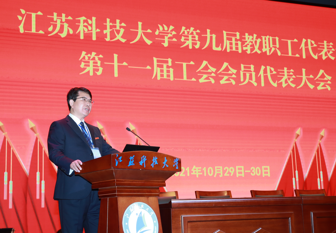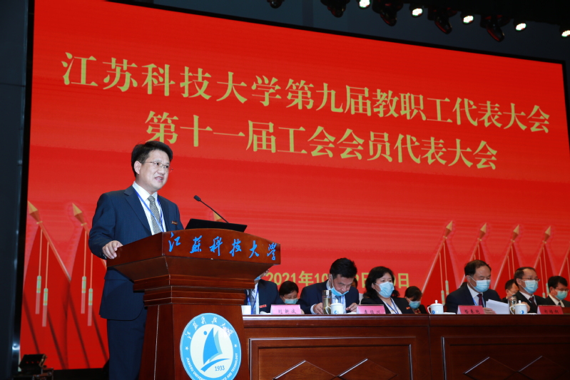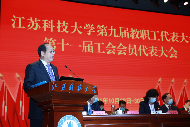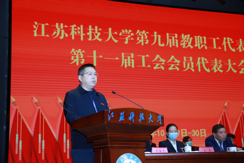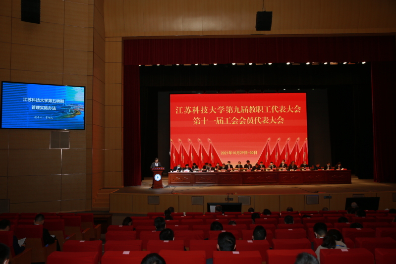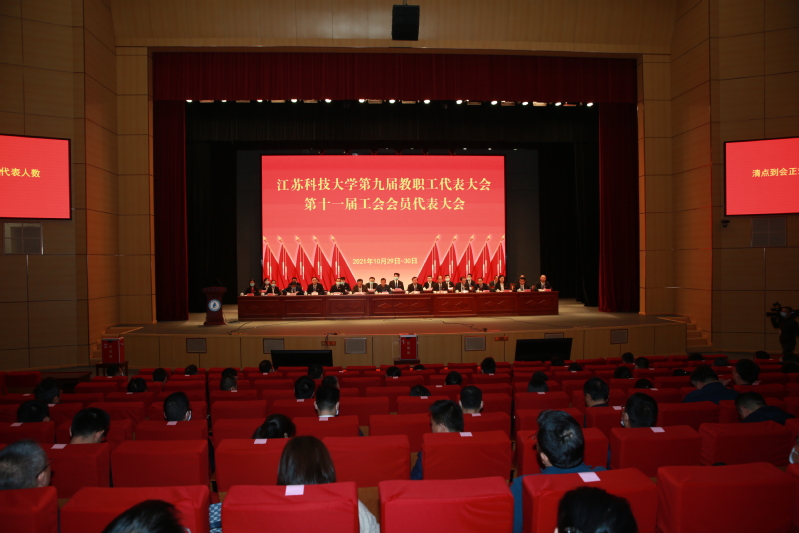 10月29日至30日, 第九届教职工代表大会、第十一届工会会员代表大会在长山校区船苑剧场隆重召开。江苏省教育科技工会二级调研员孙焱,镇江市总工会党组书记、副主席刘正泰,镇江市总工会基层工作部部长陈玉松,镇江市教育工会主席黄勇应邀出席大会。校领导葛世伦、周南平、景旭文、许俊华、王加友、汤建、俞孟蕻、郑培钢、谈镇、嵇春艳、任南,校党委常委李恒川、周春燕、刘新波及全体正式代表、特邀代表、列席人员260余人参加会议。