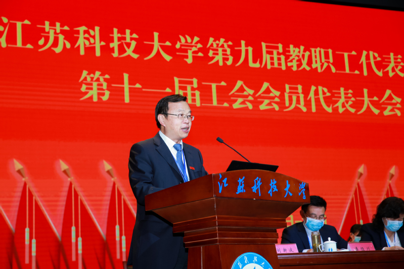 大会号召,全体师生员工要统一思想认识,深入贯彻习近平新时代中国特色社会主义思想、党的十九大和十九届二中、三中、四中、五中全会精神,全面贯彻党的教育方针,精准把握国家、行业发展大势,准确把握发展海洋经济推进建设海洋强国的战略机遇,紧紧抓住学校入选江苏高水平大学建设高峰计划建设高校的新机遇,以更加昂扬的斗志、更加饱满的热情,凝心聚力,砥砺奋进,为实现学校高质量发展、早日建成“国内一流造船大学”而不断努力奋斗!