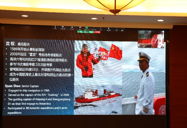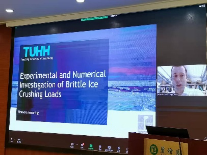 11月11日下午15时,研讨会正式开幕。 周利教授和瑞典皇家理工学院Magnus Burman教授分别致辞,并邀请大会专家做主题报告。中国远洋海运集团有限公司的蔡梅江教授展望了双碳目标下的2035北极航运新模式,阐述了我国参与北极事务的新思维。沈权船长即将随雪龙2号前往南极开展为期1年半的南极科考。临行之前,他为大会做了中国南北极科考事业的精彩解读。大连理工大学的宗智教授作了“Engineering Environmental Ice Conditions and Ship Resistance in Brash Ice”报告,重点介绍了碎冰模型实验开展情况和数值模拟方法。德国汉堡科技大学的Hauke Herrnring教授、瑞典皇家理工学院的MengZhang博士、Harsha博士分别做了主题报告。