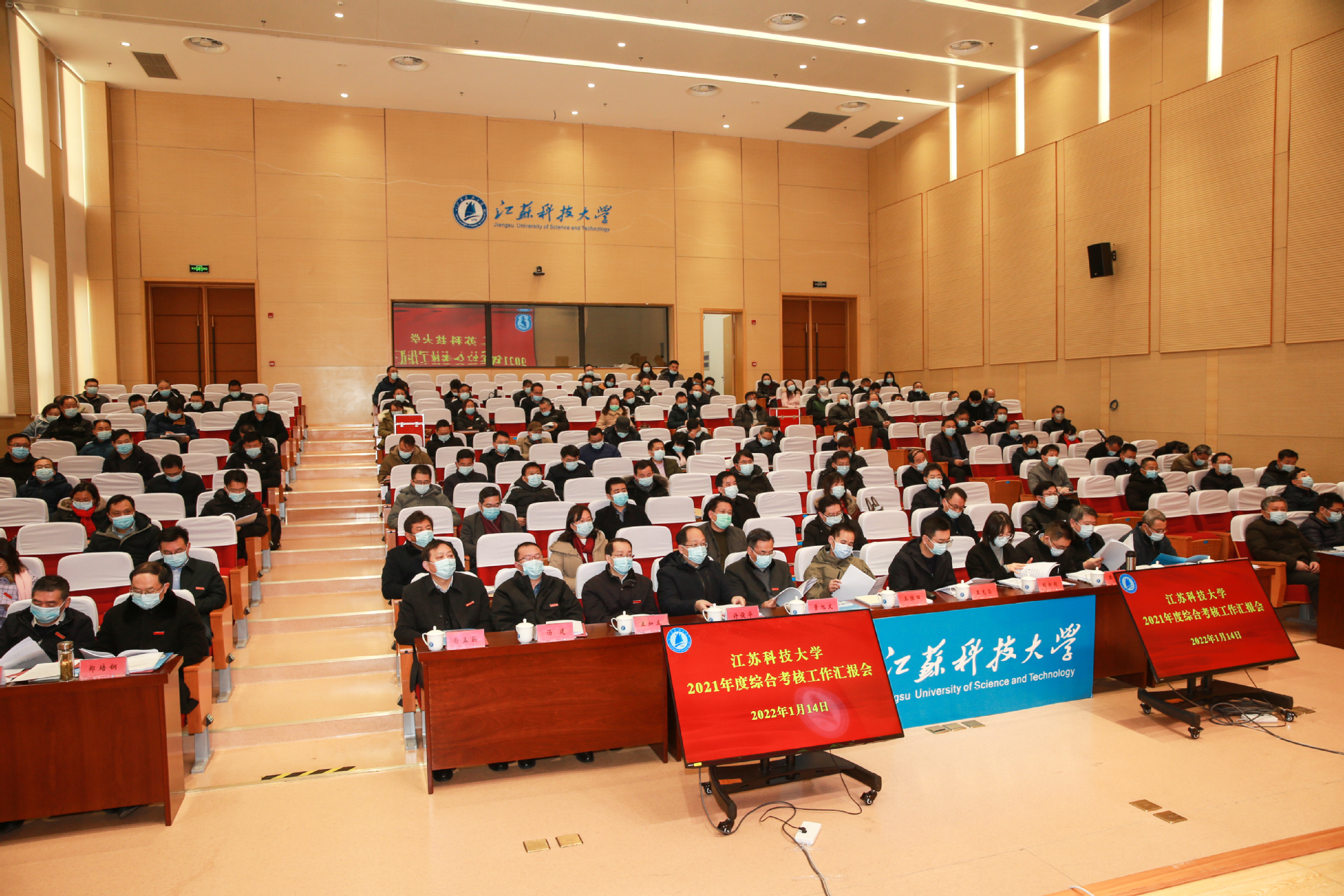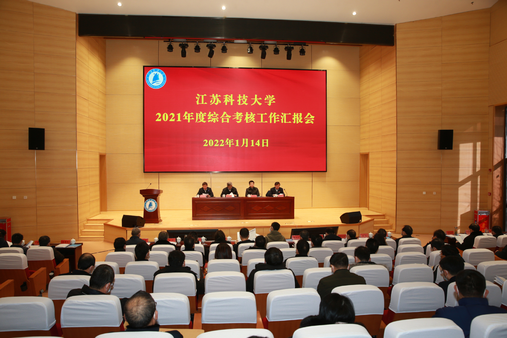 根据江苏省考核委统一安排,1月14日上午, 在长山校区行政楼100号报告厅召开2021年度综合考核工作汇报会。省第八综合考核组组长、江苏第二师范学院原党委书记李洪天,副组长、南京体育学院党委副书记兰亚明,以及综合考核组全体成员出席会议。校领导班子,校党委委员、纪委委员,全体中层正职干部,区级以上党代表、人大代表、政协委员,民主党派负责人,高级职称人员和教职工代表等参加会议。校党委书记葛世伦主持会议。