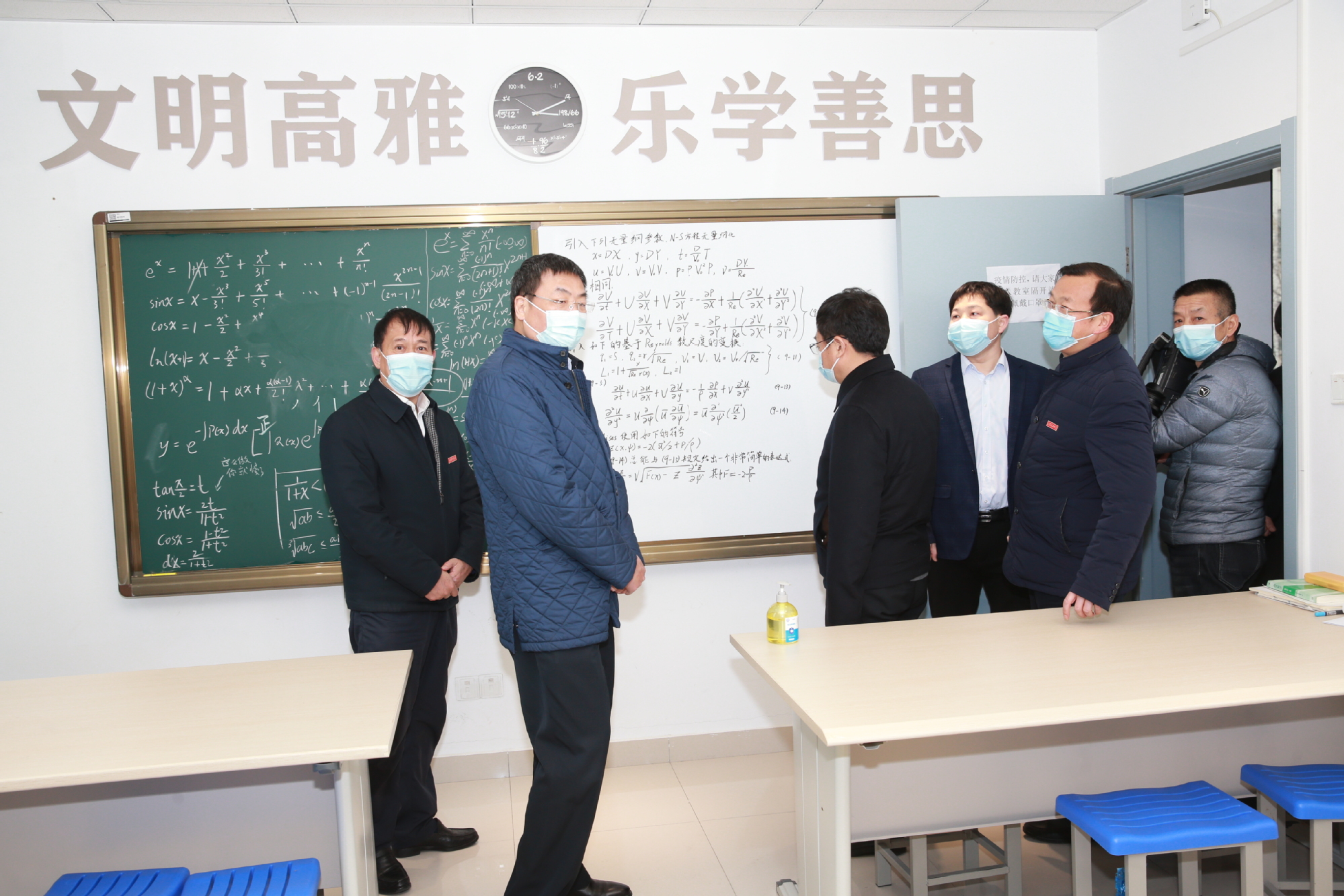 马欣一行先后参观了文理大楼监控中心、智慧教室、西苑食堂、学生公寓、医学观察区、军工展览馆等场所,听取了相关工作汇报。详细了解常态化疫情防控工作方案实施、校园安全措施落实、学生返校准备工作、线上教学等情况。在智慧教室,他仔细询问线上教学情况,要求强化线上教学规范和教学效果,创新教学方法以提高线上学习效率;在学生公寓,认真检查体温检测、消毒消杀、人员登记等防控环节,要求学生落实好“日报告”“零报告”,坚持每天进行健康监测;在西苑食堂,强调要加强食堂工作人员防疫管理,加快检测、消毒速度,更多采取网上预约、统一配餐的方式就餐。在医学观察区,仔细查看室内外设施、房间床位数量等,强调要明确工作职责,制订周密工作方案,规范处置流程。