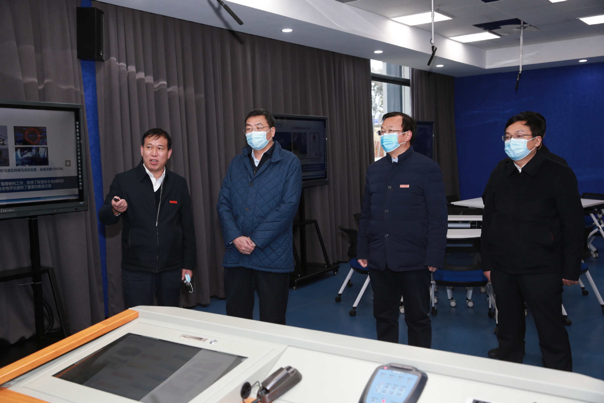在参观学校国防科研成果展时,对学校长期坚持对接国家重大需求,不懈努力服务国家海洋强国战略及国防现代化建设表示赞赏,为学校多年来取得的多项国之重器成果给予高度肯定,鼓励学校“提升特色,办出一流学科”,对学校疫情防控工作的落实情况表示肯定。他指出,学校是疫情防控重点,要按照中央和省委、省政府部署,综合考虑当前疫情形势、防控政策要求和本地本校实际,科学有序做好师生员工返校和教育教学安排,严格落实常态化疫情防控措施,坚持“人物环境”同防和多病共防,细化完善应急预案,织密扎牢校园疫情防控网。坚持把师生生命安全和身体健康放在首位,严格落细落实联防联控常态化措施,狠抓重点场所和环节,坚决守牢学校疫情防控底线,确保开学平稳有序。