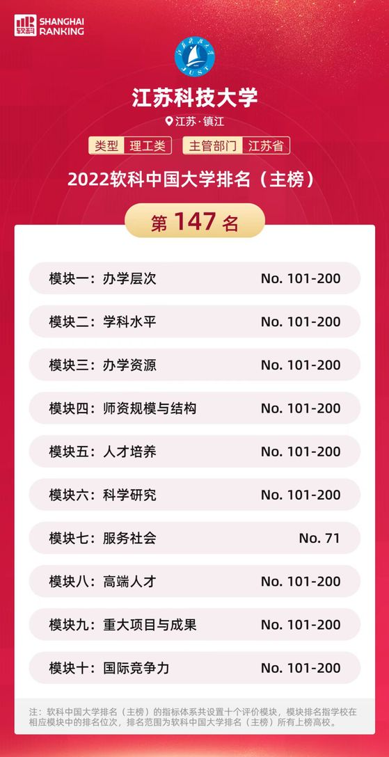 4月19日,高等教育专业评价机构软科今日正式发布“2022软科中国大学排名”。 位列中国高校第147位,在江苏高校中排名第18位。