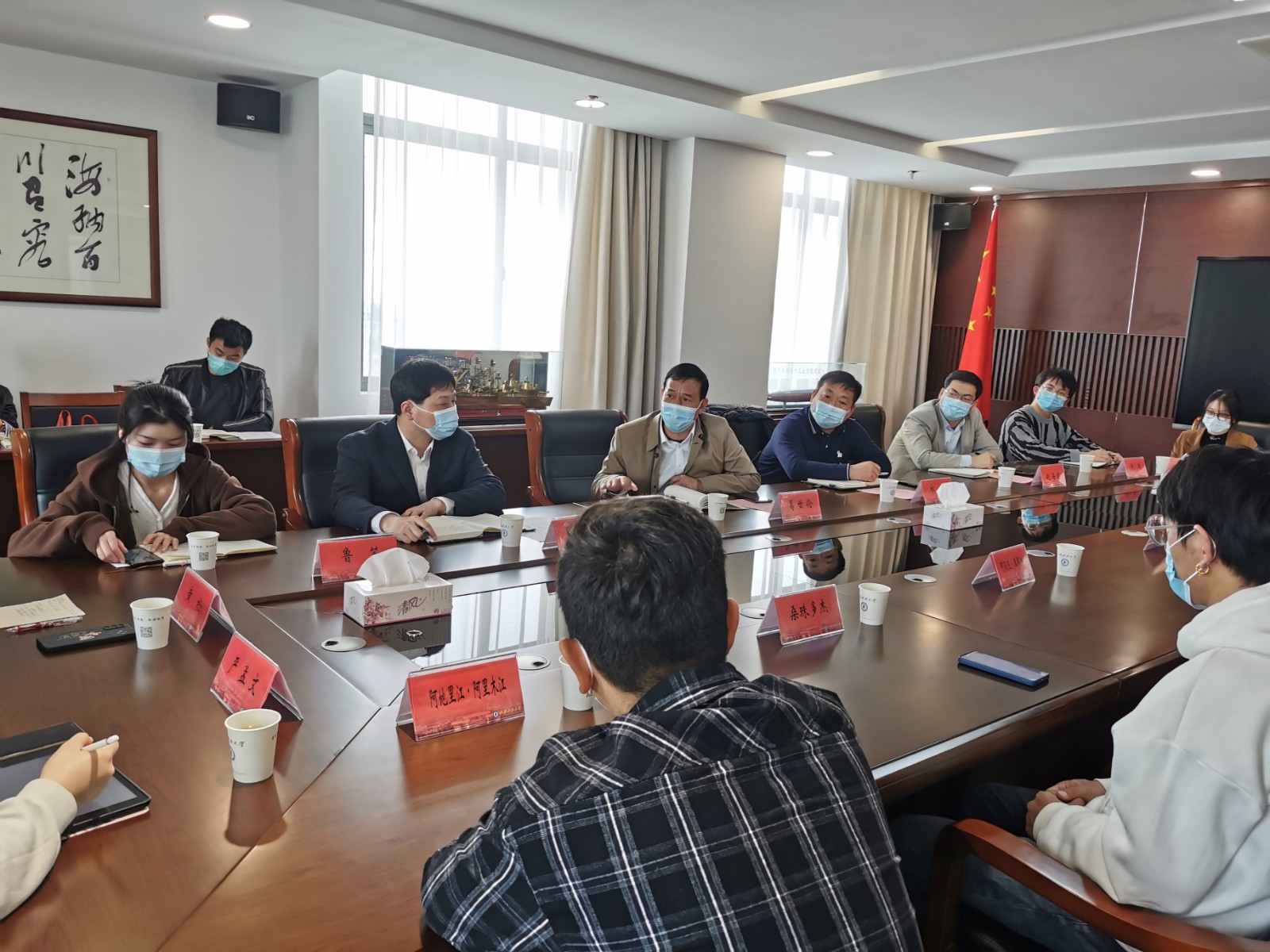 下午,在行政楼九楼会议室,葛书记与学生处、研工部、海外教育学院负责人一同,与各学院学生骨干、少数民族学生、留学生等22名学生代表进行座谈交流,及时掌握校园封闭管理阶段学生的学习生活情况,准确把握学生的思想动态,切实保障疫情防控工作的顺利开展。