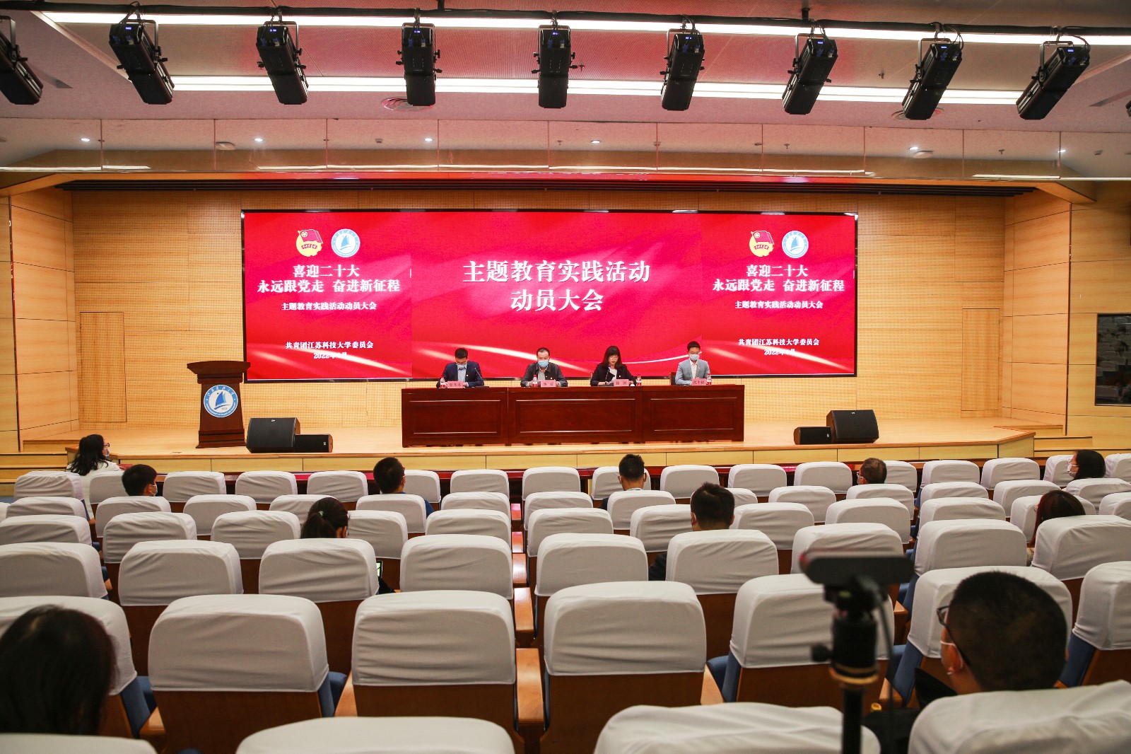 本次主题教育实践活动动员大会主会场设在长山校区图书馆报告厅B105,校团委全体工作人员、各学院团委书记、学生代表参加会议,校院两级学生组织成员、各基层团支部书记、青马工程学员、新发展团员等1000余人通过视频直播形式收看会议。