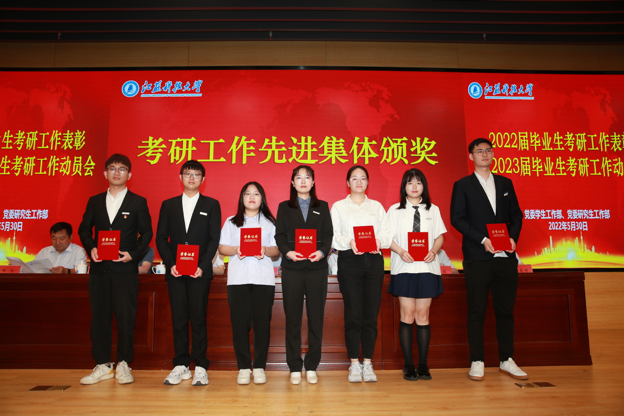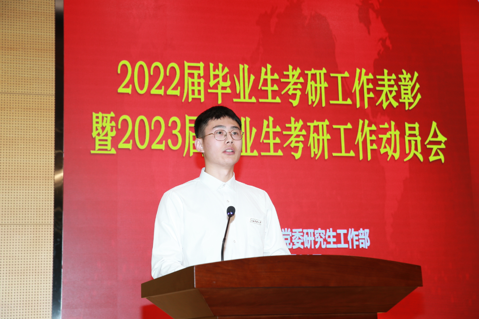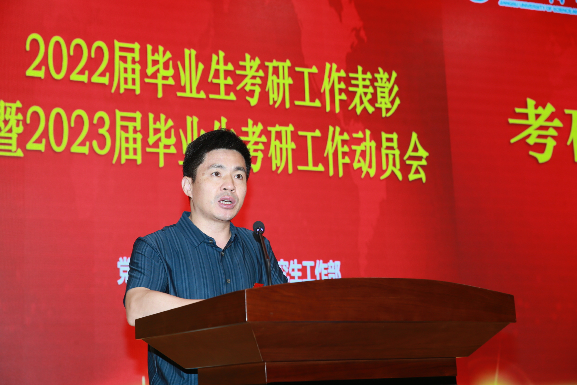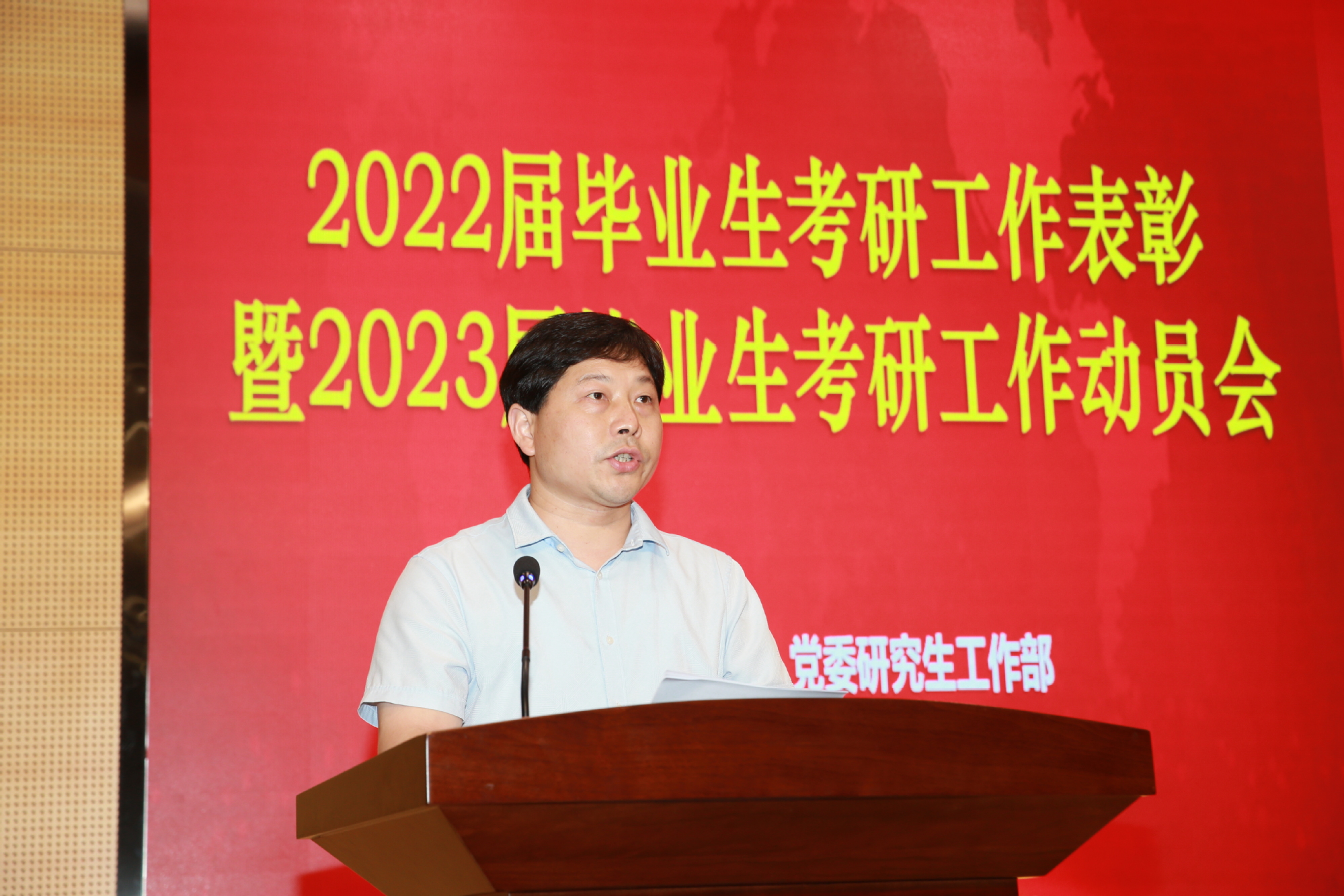 任南宣读了《关于表彰 2022届硕士研究生“考博优秀学生”的决定》《关于表彰 2022届本科毕业生考研优秀学生、优秀指导教师、先进集体的决定》,共有24名硕士研究生、1179名本科生、36名教师及37个先进集体(7个学院、10个班级、20个宿舍)受到表彰。
