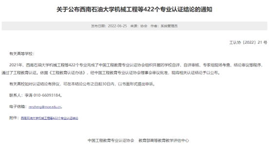 近日,中国工程教育专业认证协会发布《关于公布西南石油大学机械工程等422个专业认证结论的通知》(工认协〔2022〕21 号),我校海洋学院电子信息工程专业完成了中国工程教育专业认证协会组织开展的学校自评、自评审核、专家组现场考查、结论审议等程序,通过工程教育认证,有效期为6年(2022年1月至2027年12月)。这标志着电子信息工程专业的质量实现了国际实质等效,进入全球工程教育的“第一方阵”。