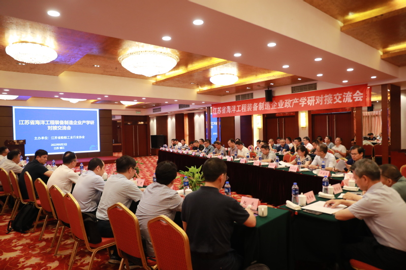 江苏省海工装备是我省优势产业,约占全国的三分之一。围绕如何加快稳链补链强链延链,推动产业链高质量发展,8月3日,由江苏省船舶工业行业协会、 主办的江苏省海洋工程装备制造企业政产学研对接交流会在镇江召开。江苏省船舶与海工产业链首席专家、省船舶工业行业协会会长、 党委书记葛世伦, 副校长俞孟蕻,江苏省船舶与海工产业链首席专家、江苏省船舶工业行业协会秘书长蒋志勇,中国船级社江苏分社审图中心主任谈生根出席会议。来自该省重点船舶海工装备企业、海工配套企业、研发设计机构以及学校科技处、各学院负责人70多人参会。