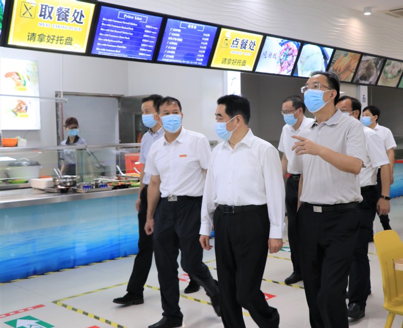 张爱军一行先后来到长山校区北门、西苑食堂、西片区学生公寓、文体中心核酸检测点、文理大楼等场所,实地调研我校疫情防控工作、校园安全措施落实等情况。调研过程中,张爱军详细询问了学校学生返校防疫工作方案、门禁管理系统运行、宿管等重点人员核酸检测频次及值班等情况,察看了公寓便利空间、爱心坊、智慧洗衣房、24小时自习室、智慧教室等硬件设施和管理情况,了解食堂就餐防疫举措、菜品价格和种类,核酸检测流程、线上教学、科技发展特色等情况,并与返校学生进行了亲切交谈,了解他们假期与返校后的学习、生活等情况。