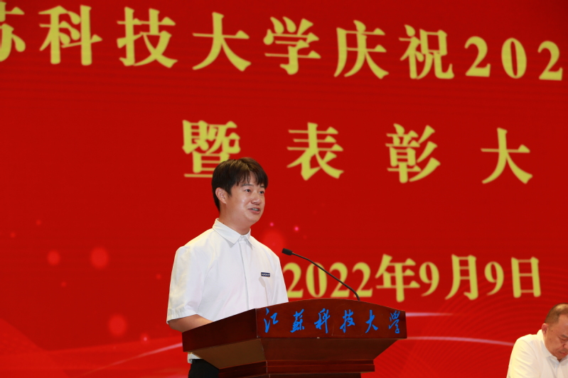 土木工程与建筑学院研究生赵祥冉同学代表全体江科大学子,向所有老师表达了由衷的感恩之情,并献上诚挚的节日祝福。他说道,“作为江科大学子,要苦练本领、锐意进取,践行请党放心、强国有我的青春誓言,在实践中成长成才,书写无愧于时代、无愧于历史的青春篇章。”