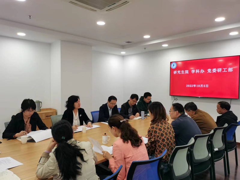 10月5日上午,校党委常委、副校长嵇春艳到研究生院调研指导 和研究生教育工作。研究生院常务副院长、学科办主任王俊对2022年上半年学校重点工作的完成情况及下半年的工作安排进行汇报。各科室分别就省优势学科验收与申报、新一轮博硕士点申报准备、国防特色 、“十四五”校学科立项建设、研究生招生、导师队伍建设、研究生培养管理、学位论文管理、研究生学生管理、研究生实践基地建设和产教融合教学改革等具体方面进行了汇报。
