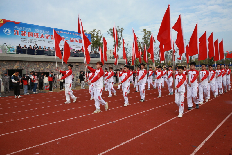 迎着朝阳,国旗护卫队成员护卫着国旗,踏着整齐的步伐,昂首阔步走向主席台。在国旗方阵和校旗方阵的带领下,裁判员方阵、教职工方阵和20个学院的运动员代表迈着铿锵有力的步伐依次入场,展现了学校师生昂扬向上、拼搏奋进的精神风貌。全体师生列队肃立,注视着五星红旗冉冉升起,齐声唱响《中华人民共和国国歌》。