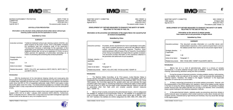 (由我校海事履约研究团队牵头撰写并被IMO采纳入库的3项提案)